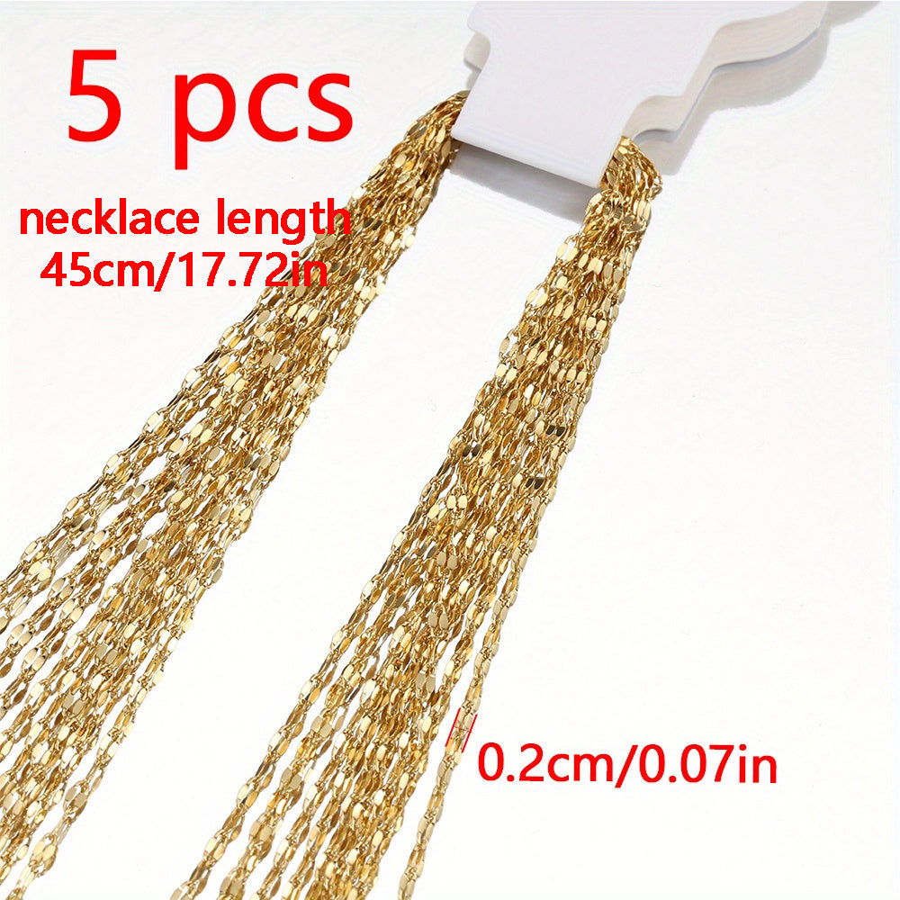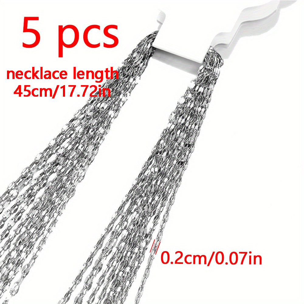 This set includes 5pcs of stainless steel chain for creating your own jewelry pieces such as bracelets, necklaces, and anklets.