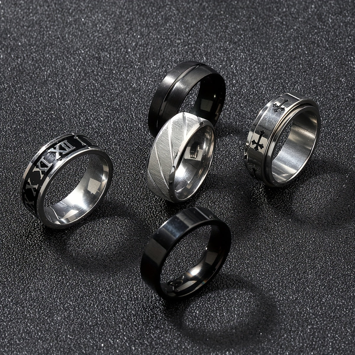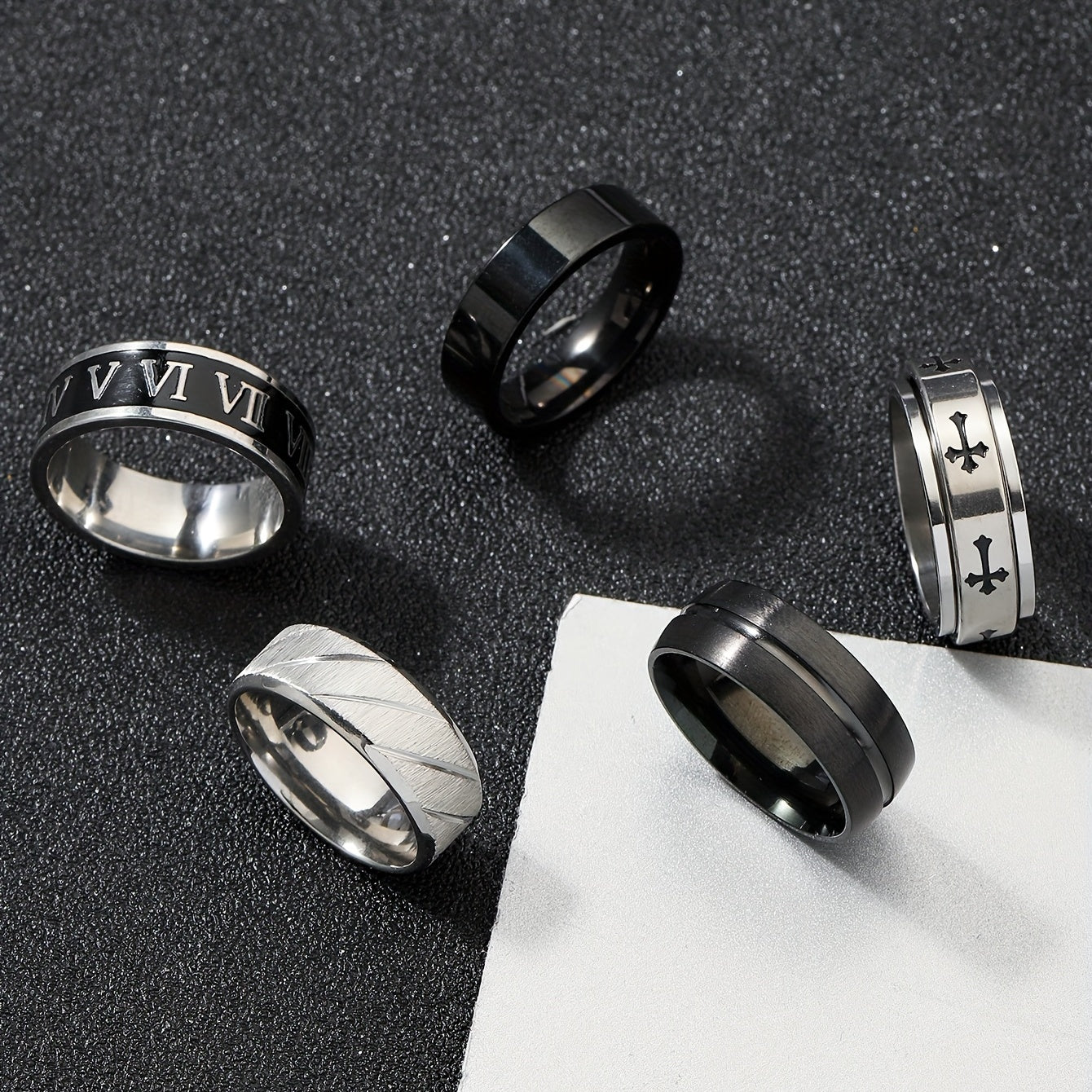 This set includes 5 stylish stainless steel rings with cross design for men. Perfect for daily wear or special occasions.