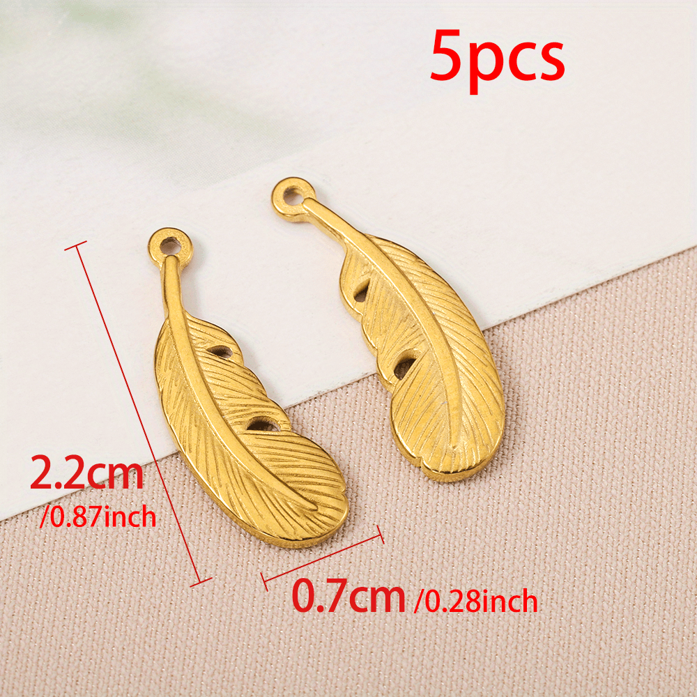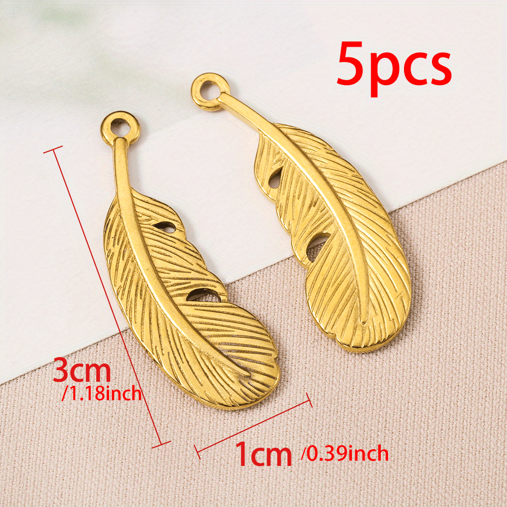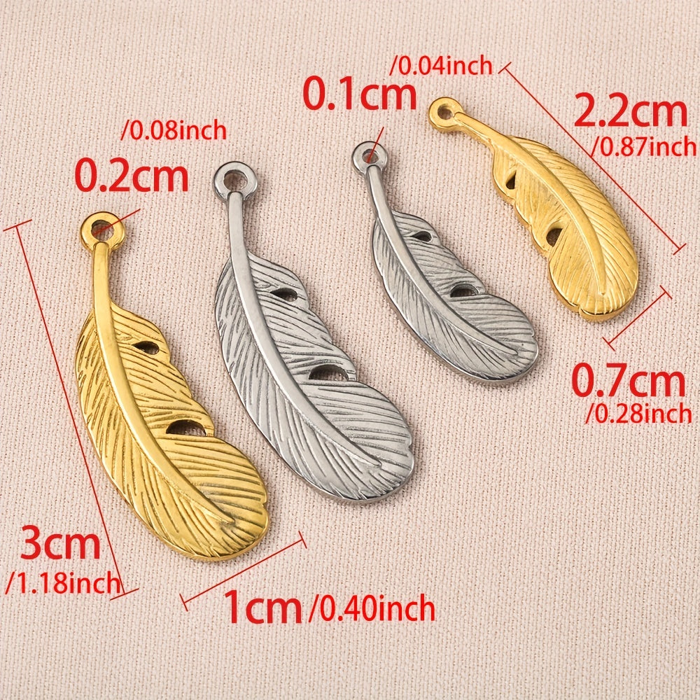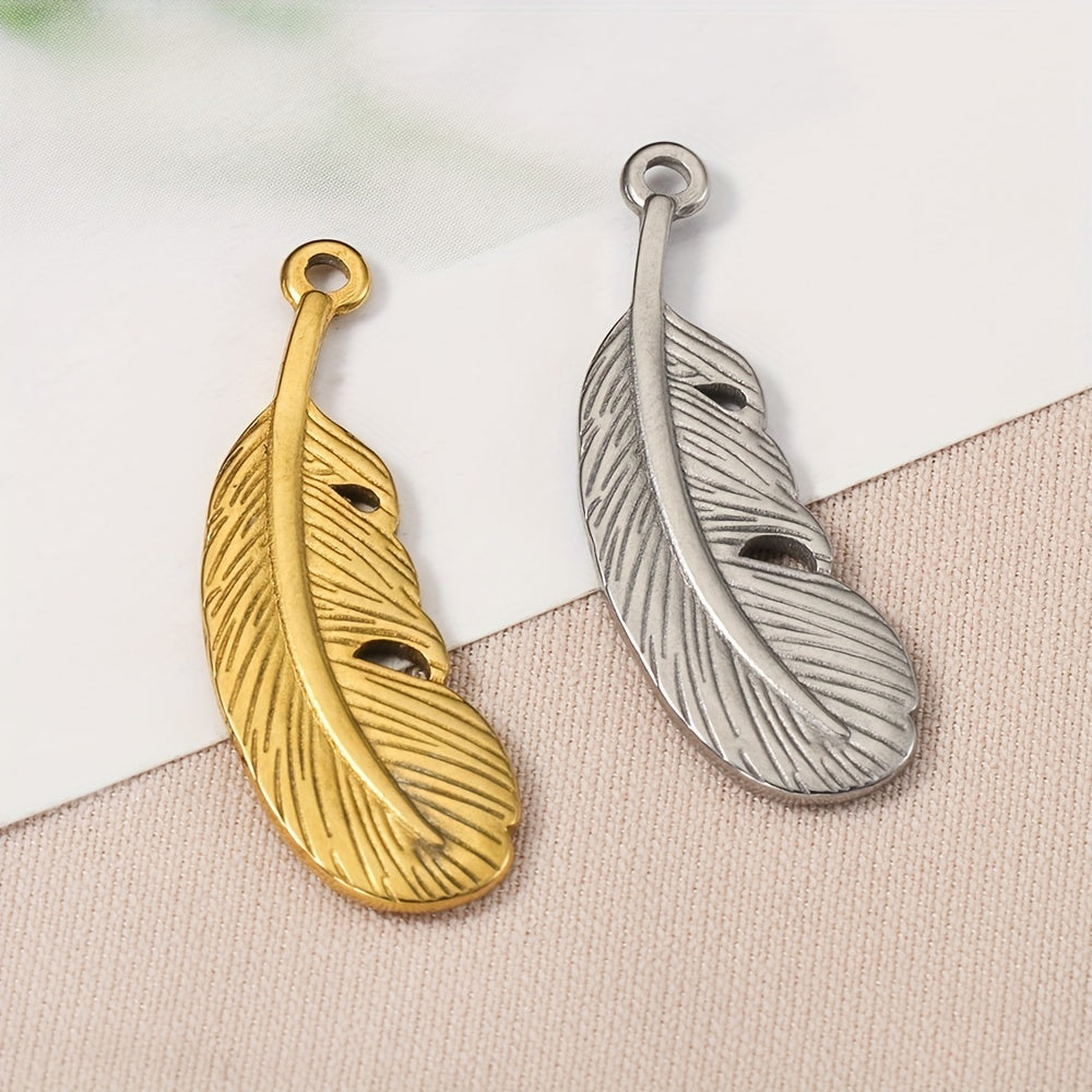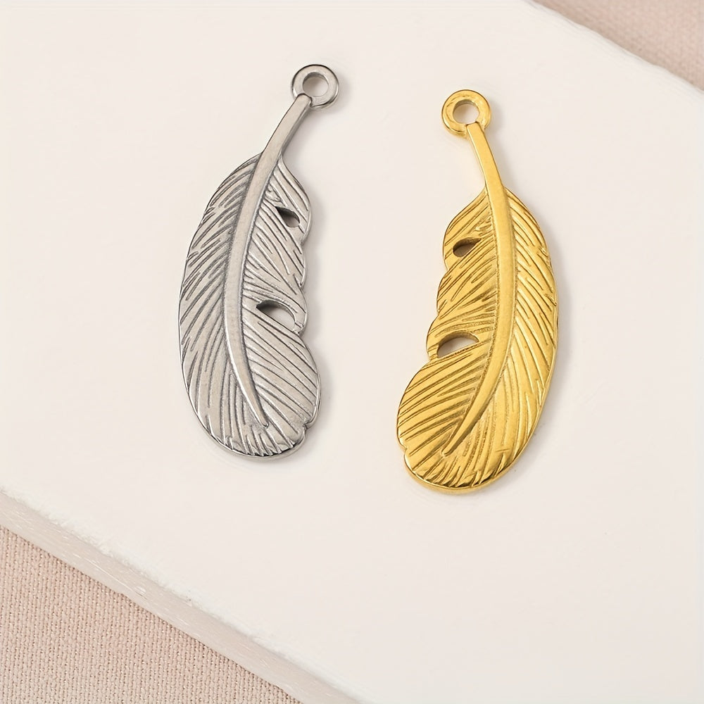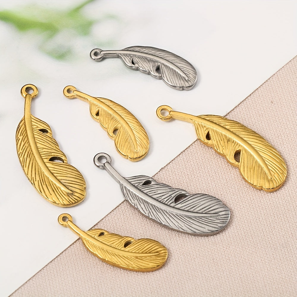 Add a touch of elegance to your jewelry creations with these stainless steel feather pendants. Available in golden or silver colors.