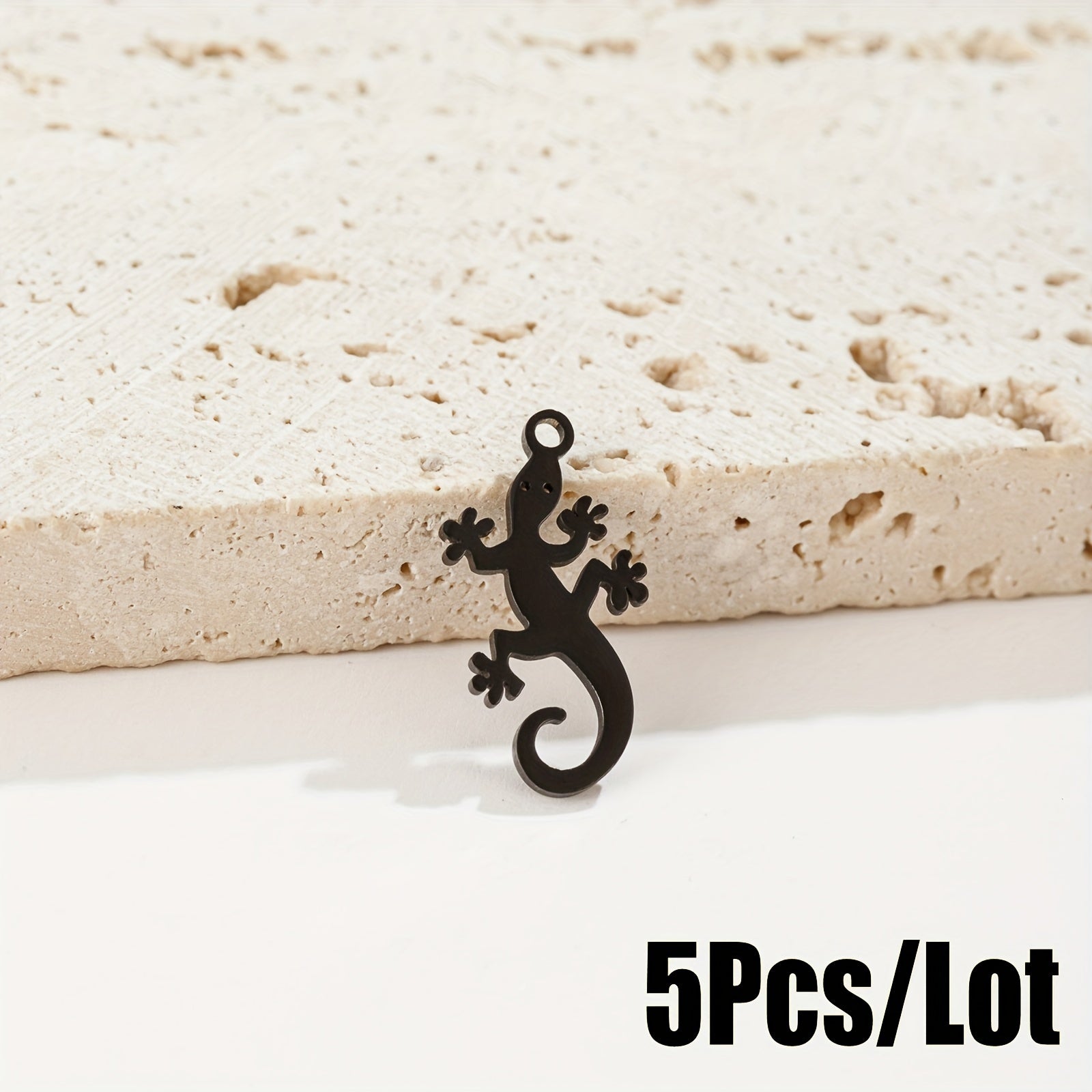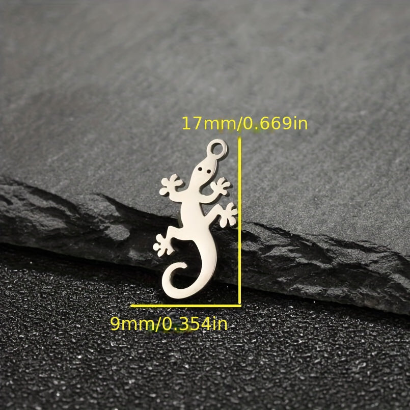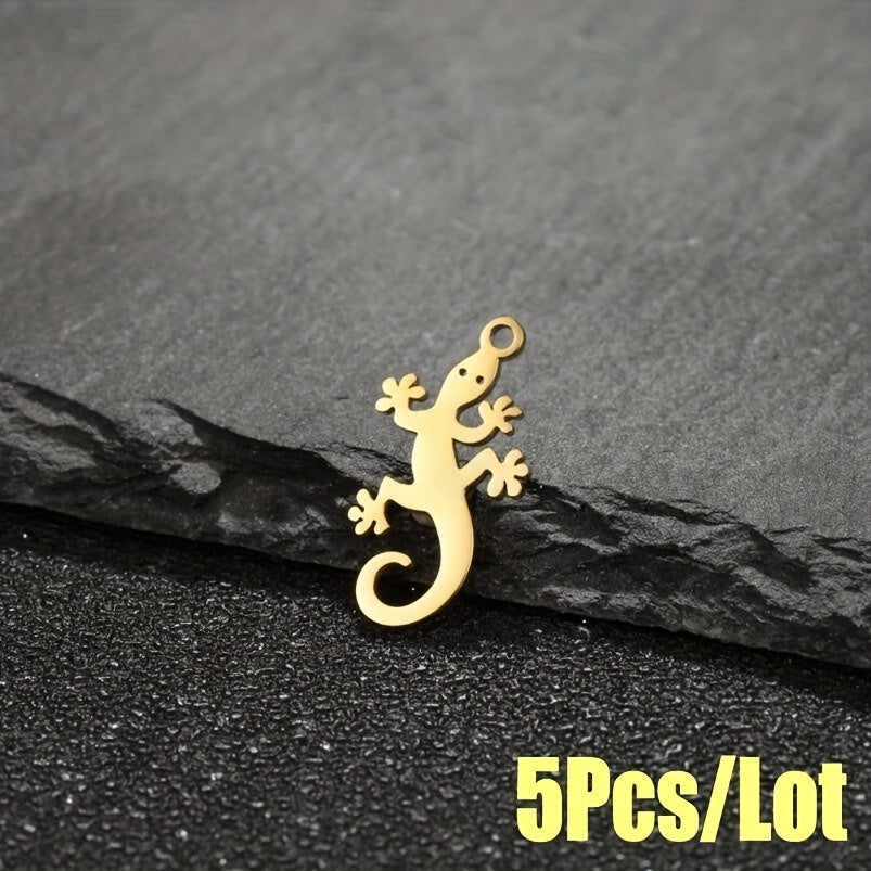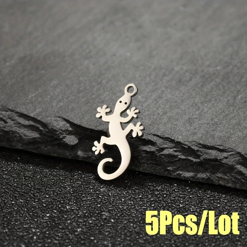 Elevate your accessory game with this set of 5 lucky lizard pendants made of high-quality stainless steel. Perfect for creating earrings, bracelets, necklaces, and more.