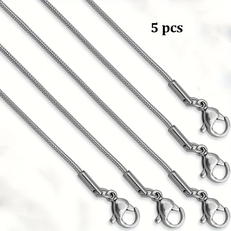 This 5-piece stainless steel necklace set includes snake chain necklaces suitable for women and men. Perfect for weddings and everyday wear.