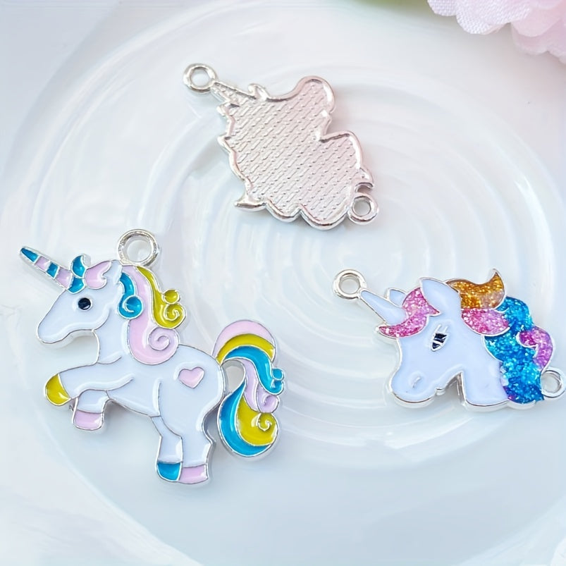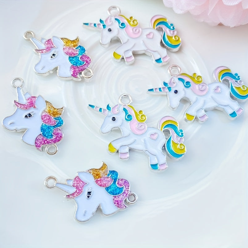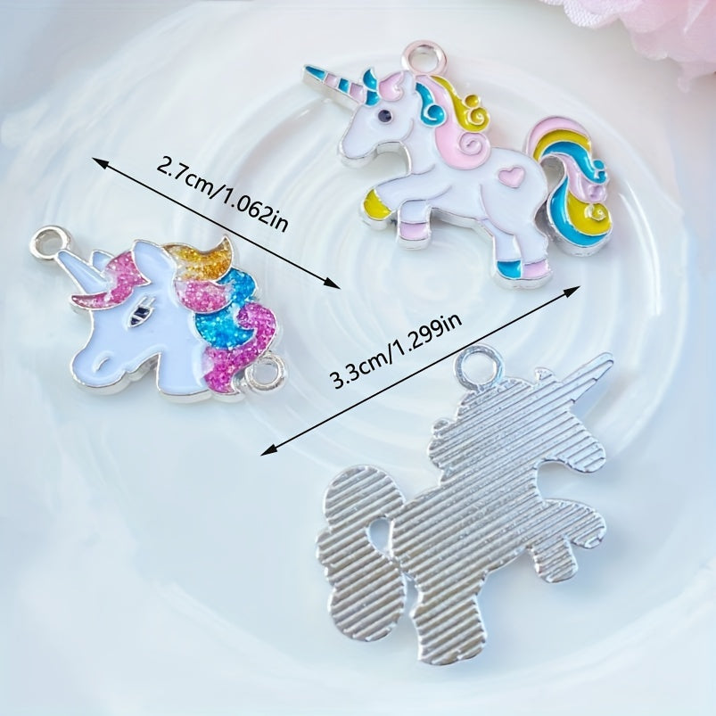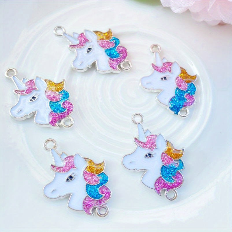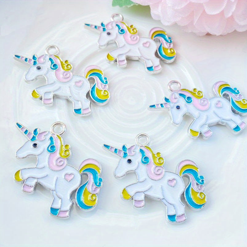 This set includes 5 unicorn pattern drip oil alloy accessories to add a magical touch to your jewelry collection.