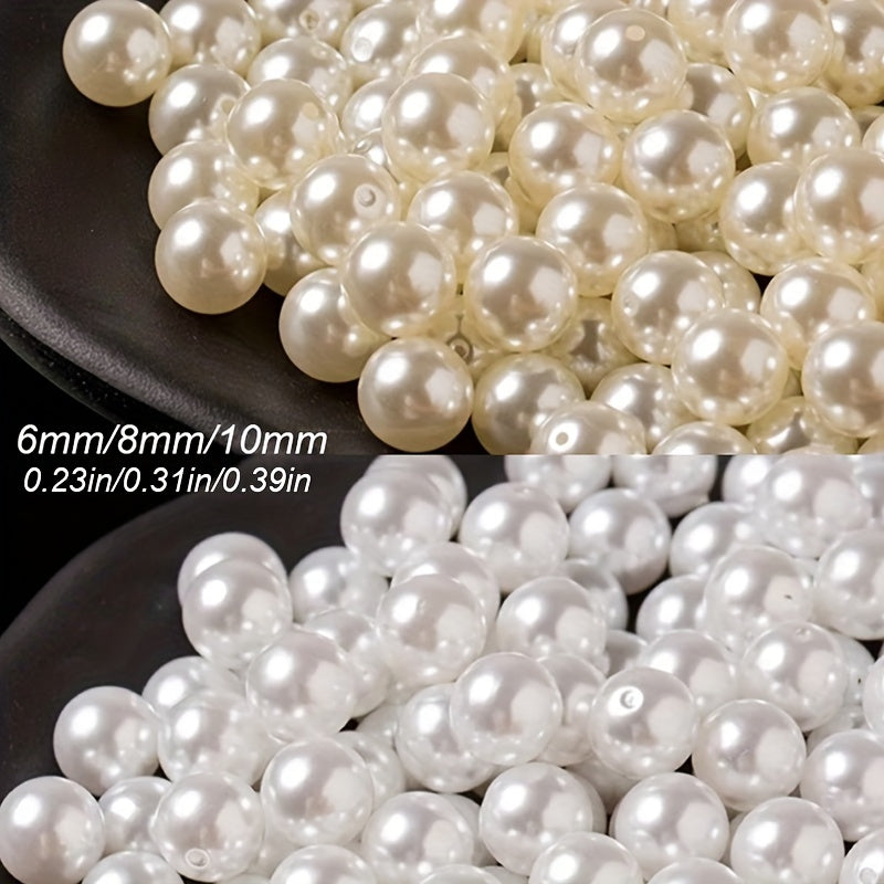 Get creative with these beige pearls beads perfect for jewelry making and DIY clothing accessories. Each pack contains 6mm, 8mm, and 10mm round beads.