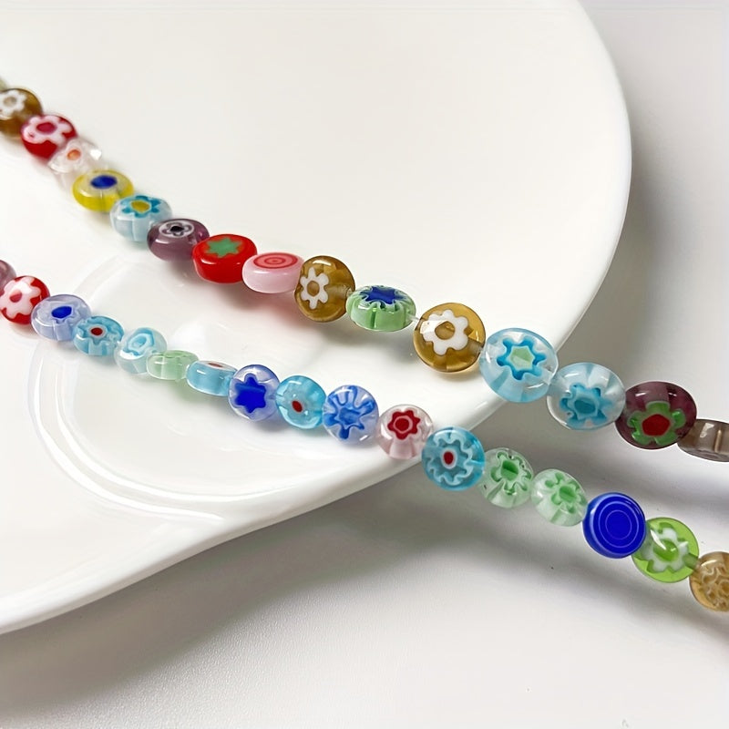 Add a pop of color to your DIY jewelry projects with these beautiful flower detail round flat beads. Perfect for creating bracelets, necklaces, and other accessories.