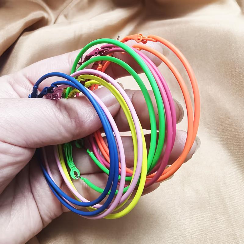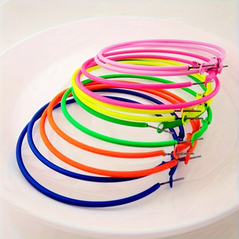 Add a pop of color to your outfit with these vibrant hoop earrings. Made from stainless steel, these earrings are perfect for daily wear and offer all-day comfort. A great accessory for spring and summer.