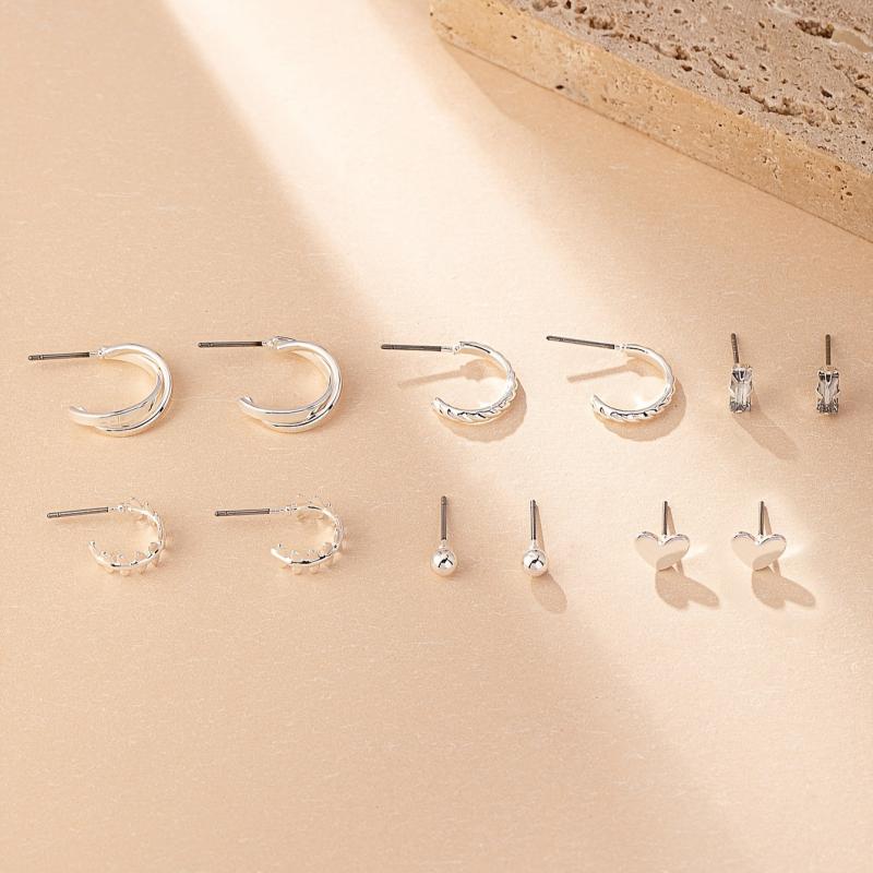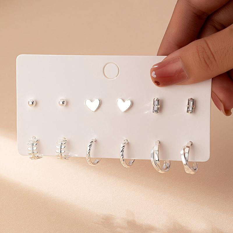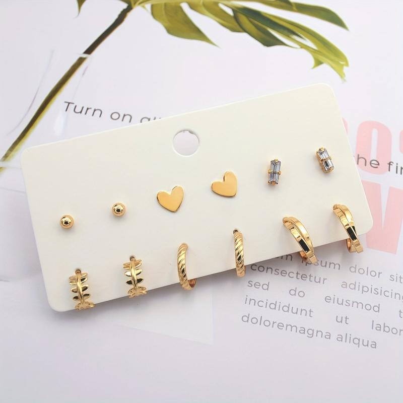 Elevate your style with this set of 6 pairs of fashionable classic rhinestone decorated earrings and ear rings. Perfect for daily wear during Ramadan celebrations and parties. Makes a great gift for jewelry lovers.