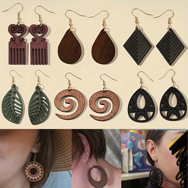 These wooden dangle earrings are perfect for fall and winter with their retro bohemian style. They are light weight and make a great gift for women.