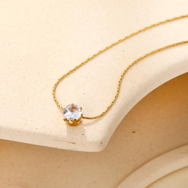 Elevate your formal attire with this stunning crystal pendant necklace. Made of lightweight 18K golden plated 316 stainless steel, this necklace is perfect for weddings and formal events.