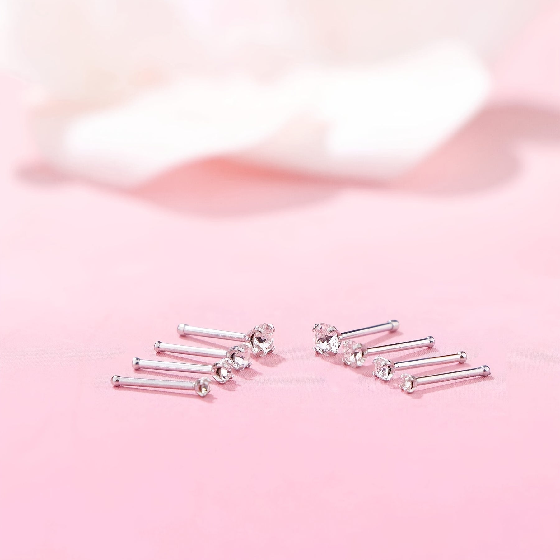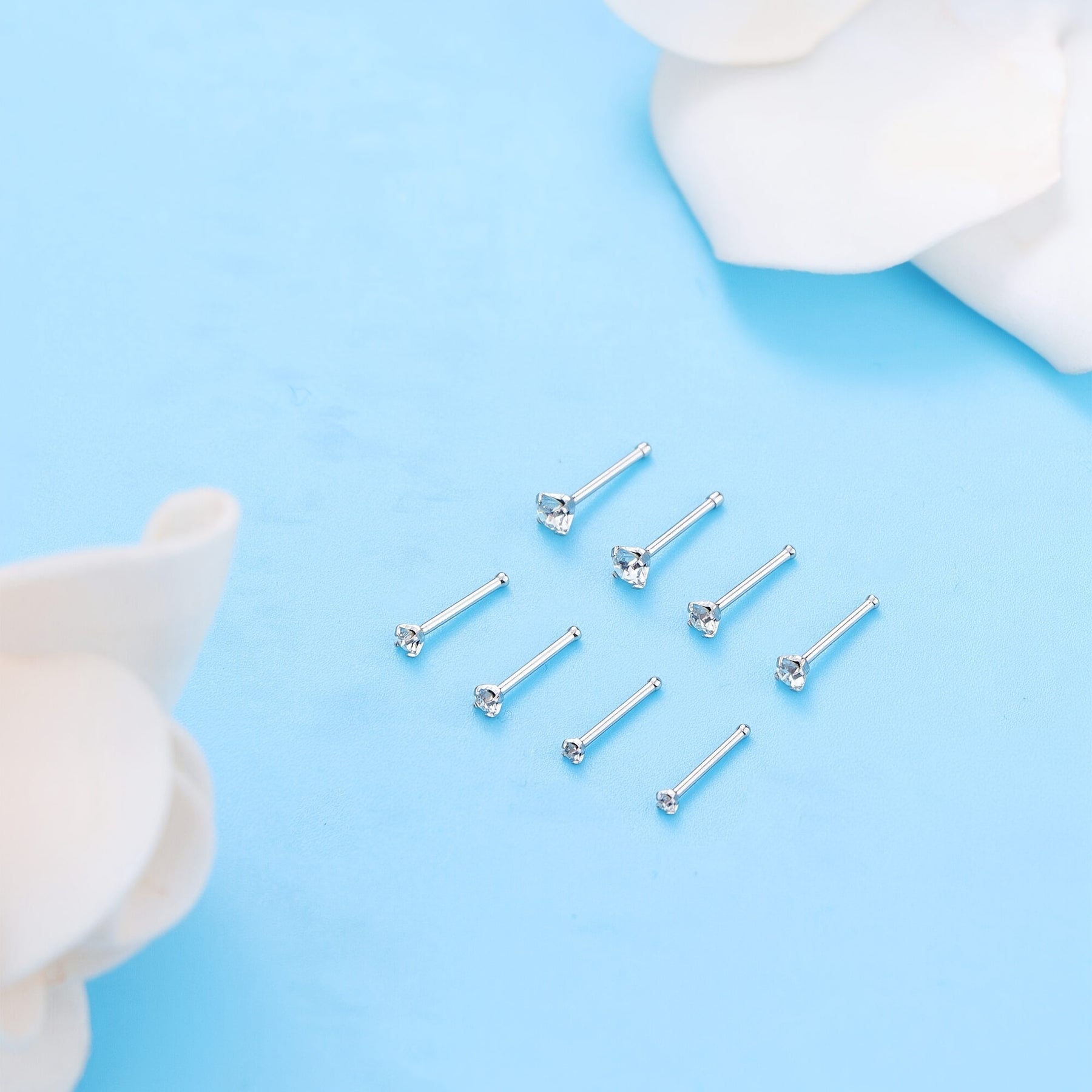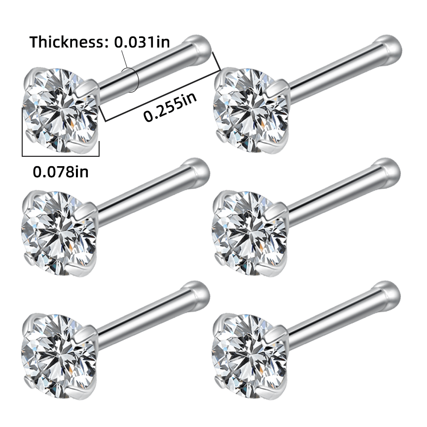 This set includes 6 nose ring studs suitable for nose piercings. Hypoallergenic material ensures compatibility with sensitive skin.