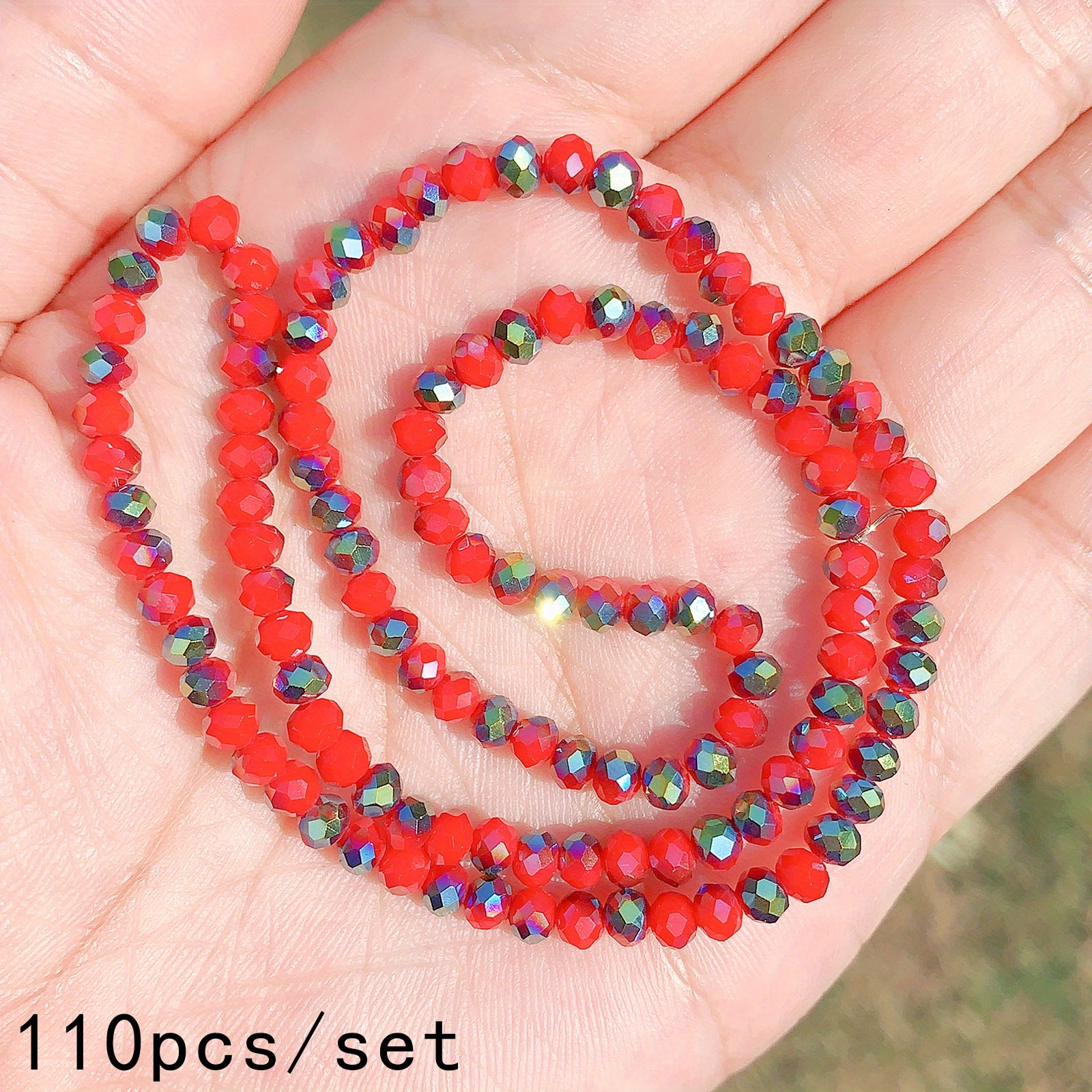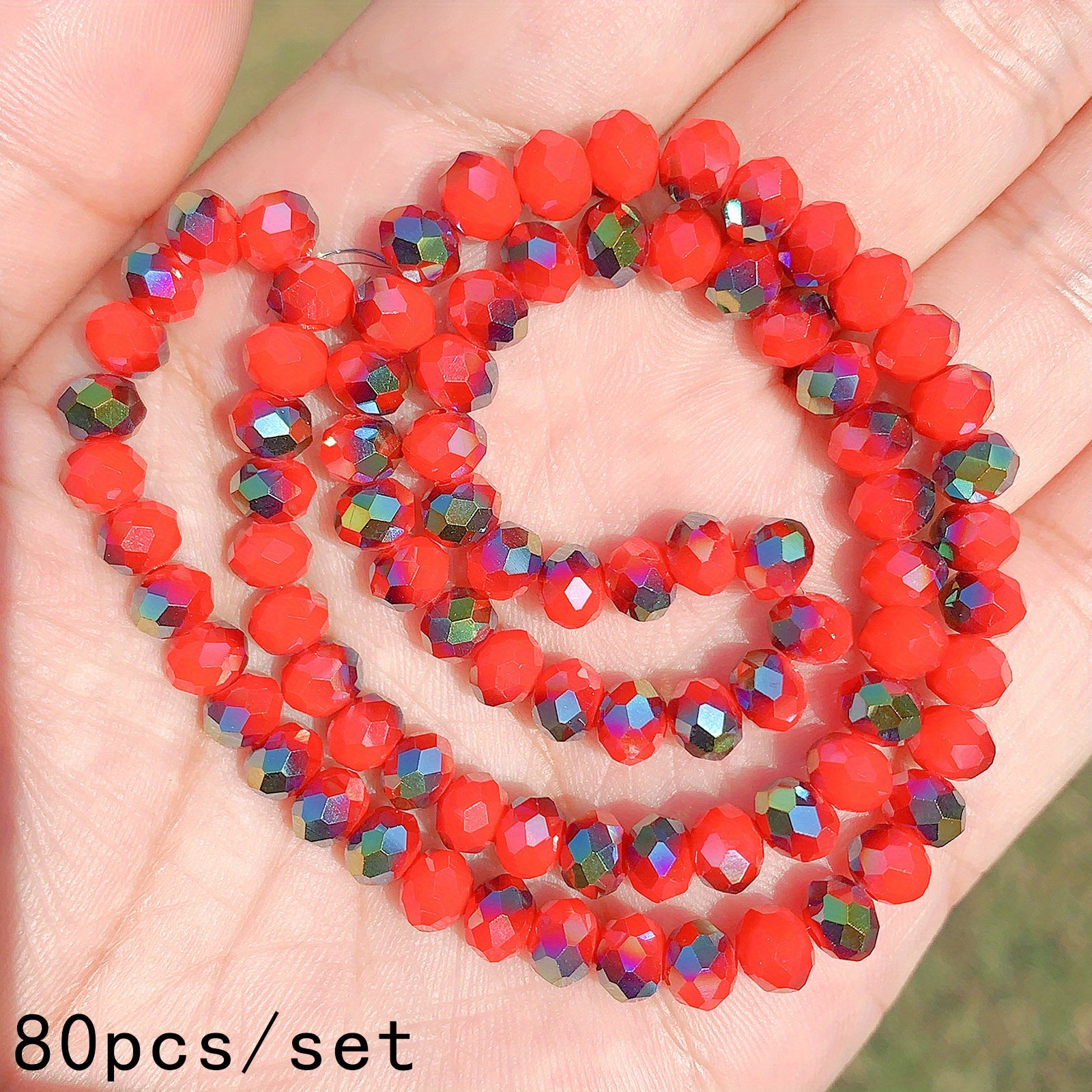Enhance your jewelry-making projects with these red and half green faceted glass beads. Perfect for bracelets, necklaces, and more.