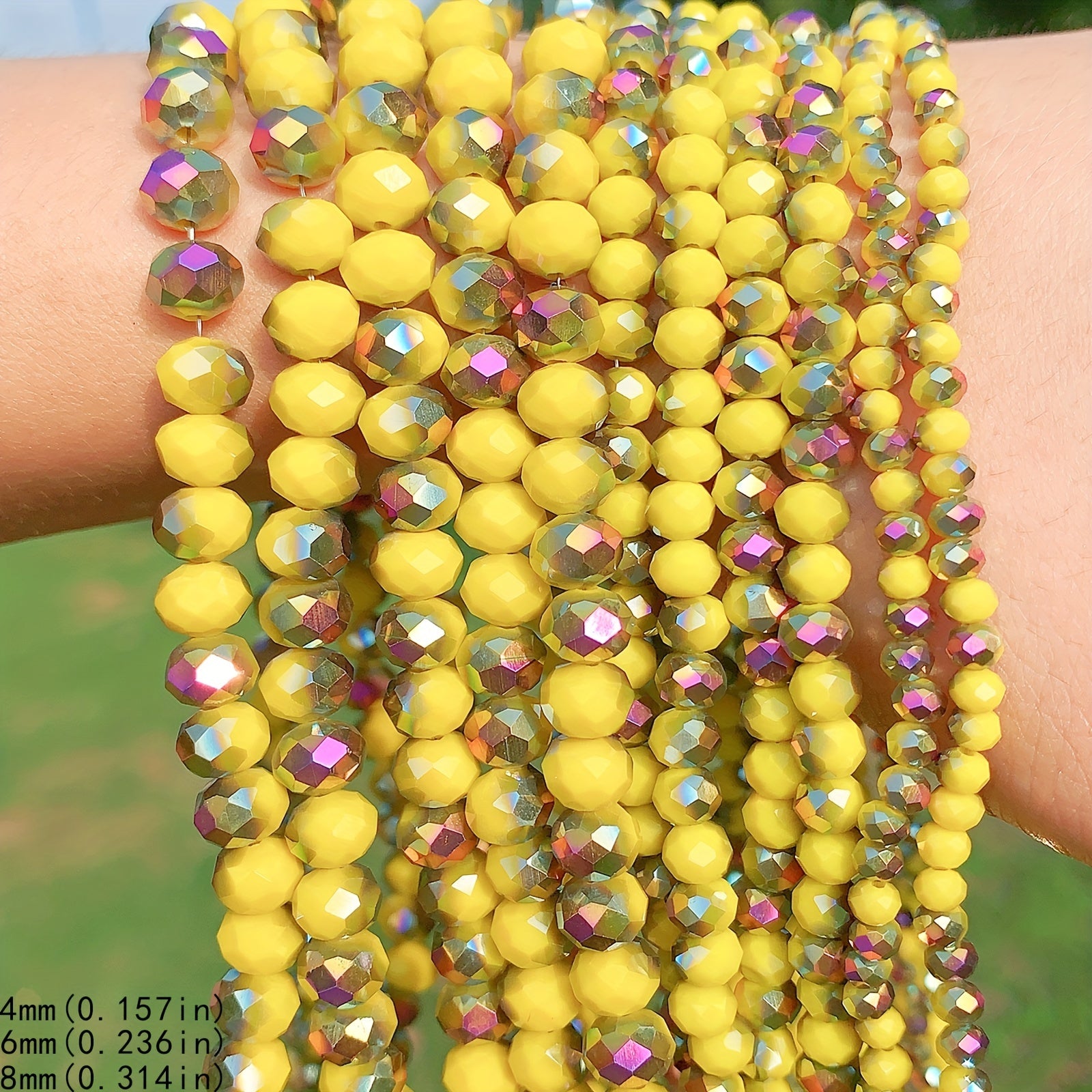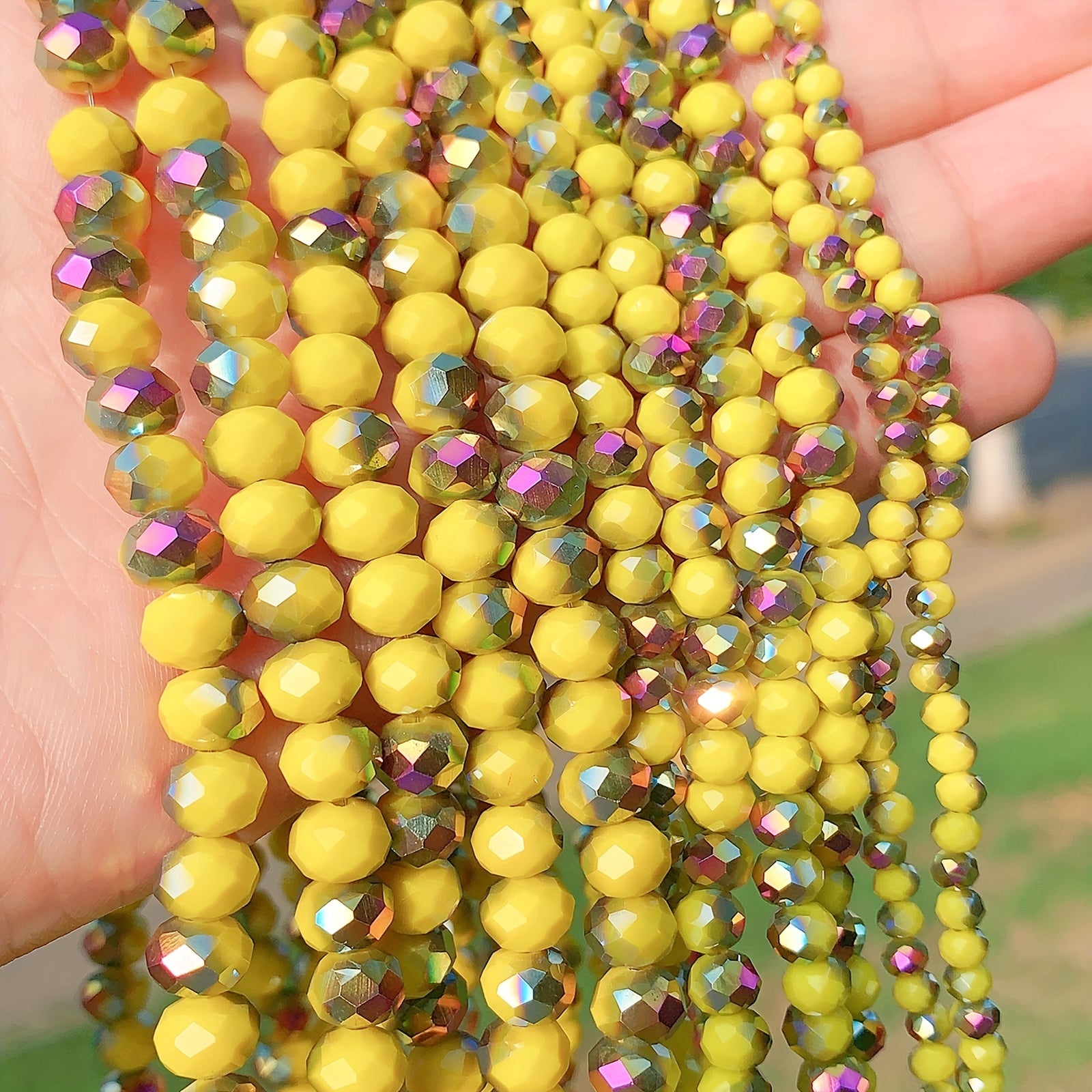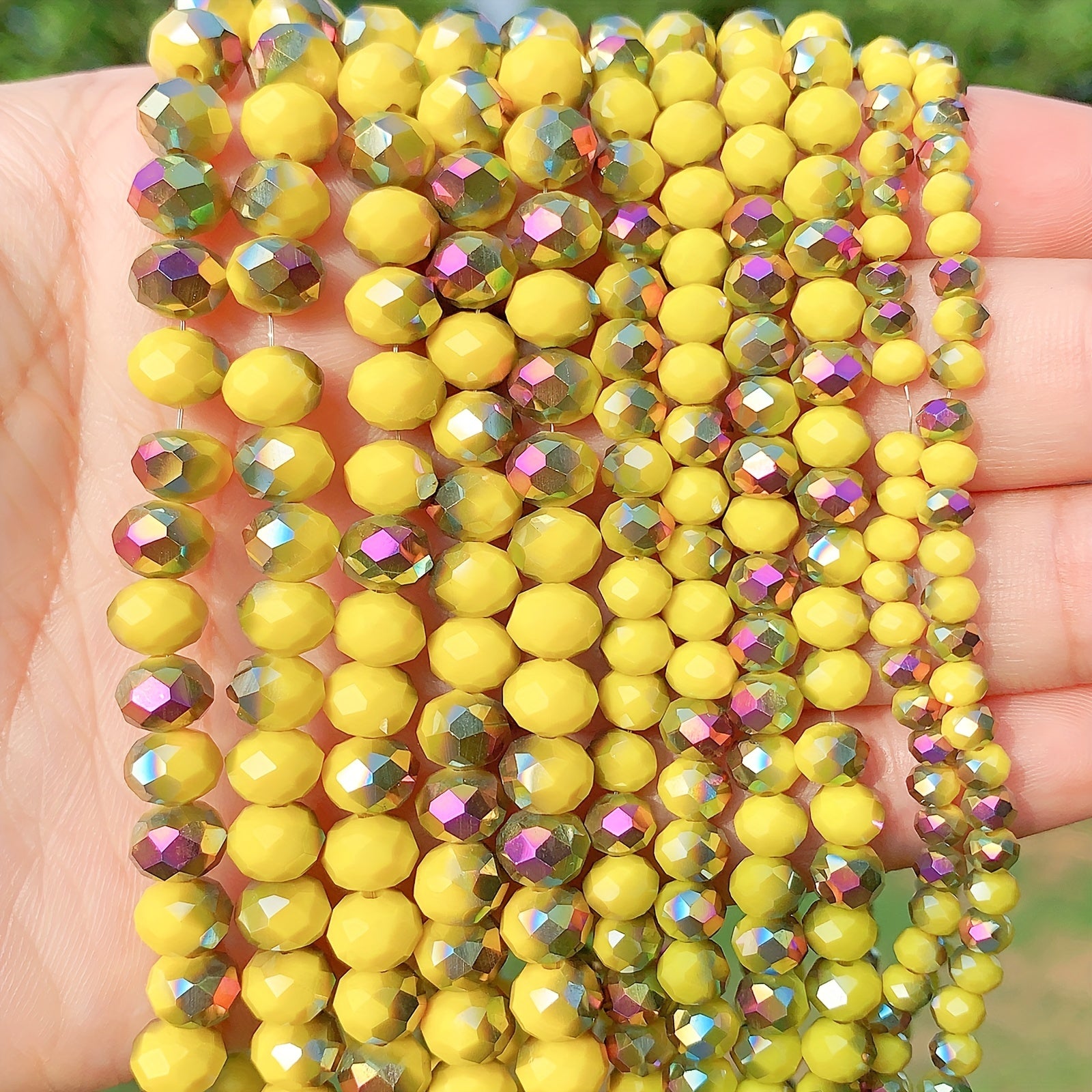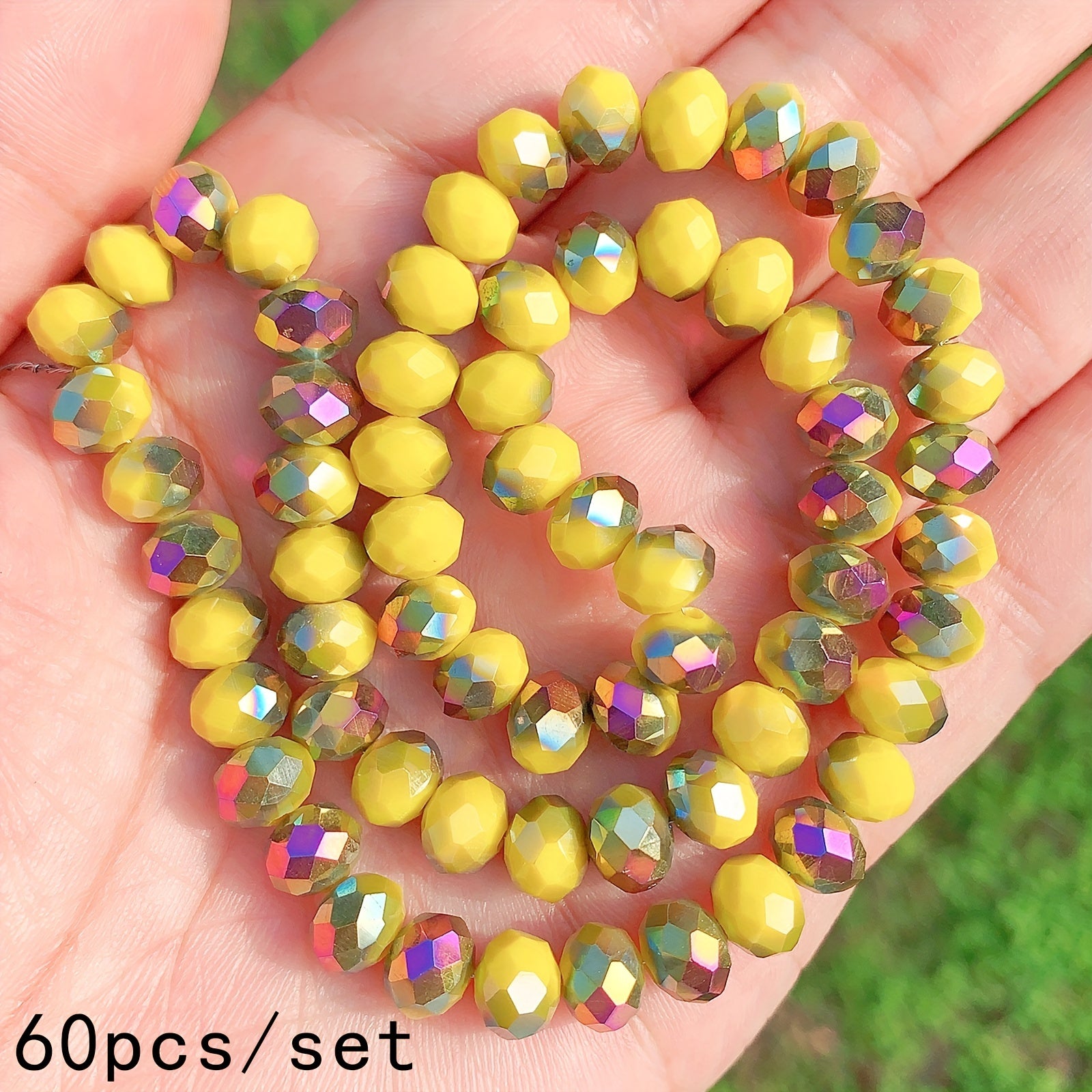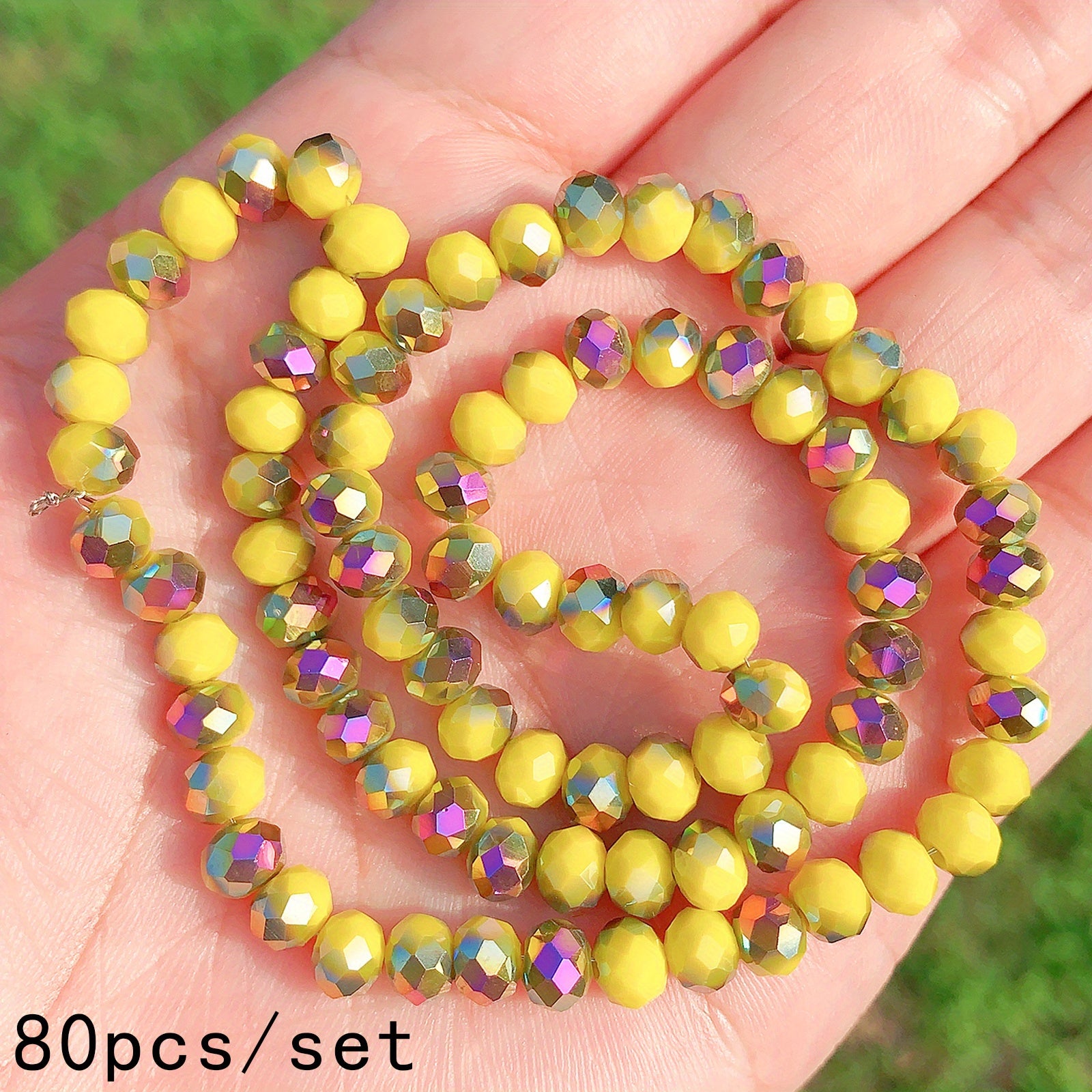 Create stunning bracelets and necklaces with these yellow, half purple, and rose red glass beads. Perfect for crafting unique accessories.