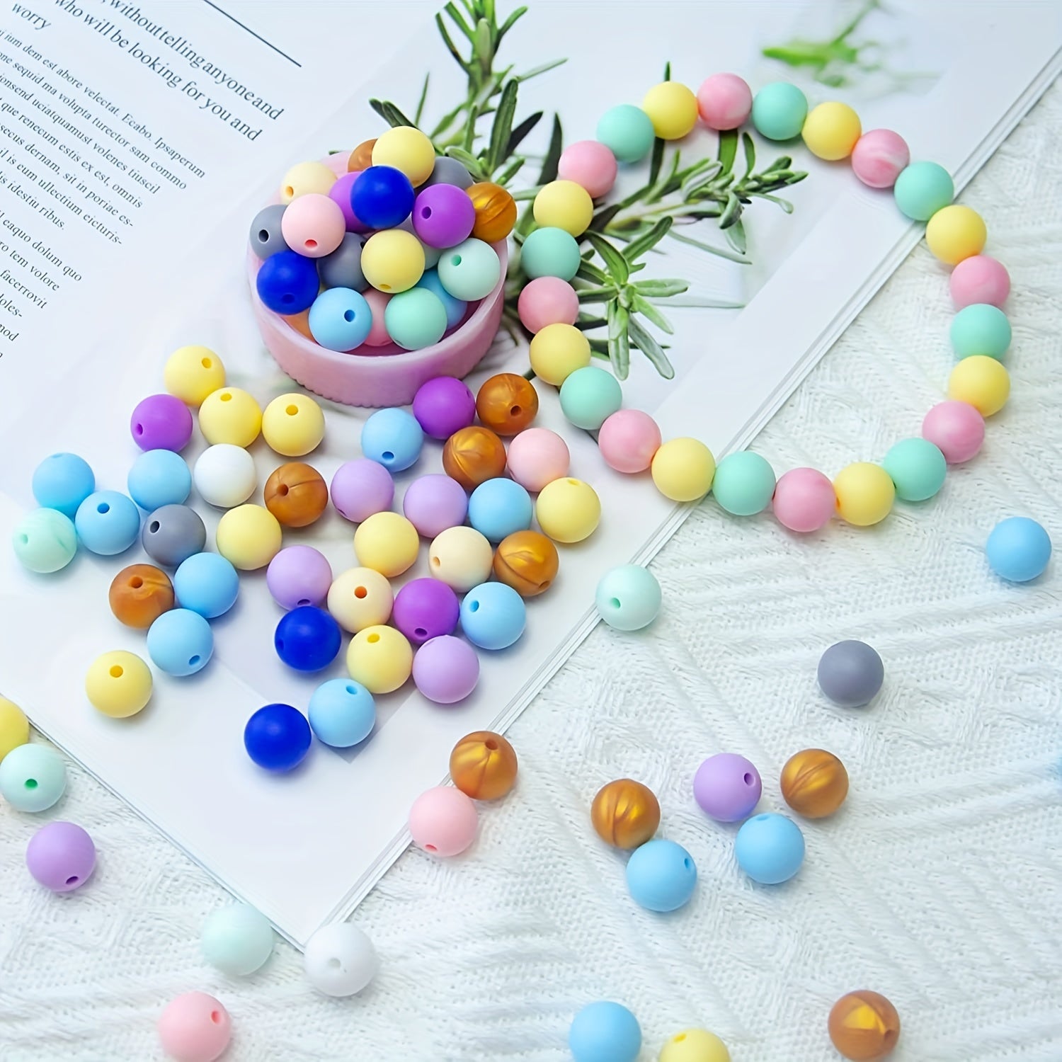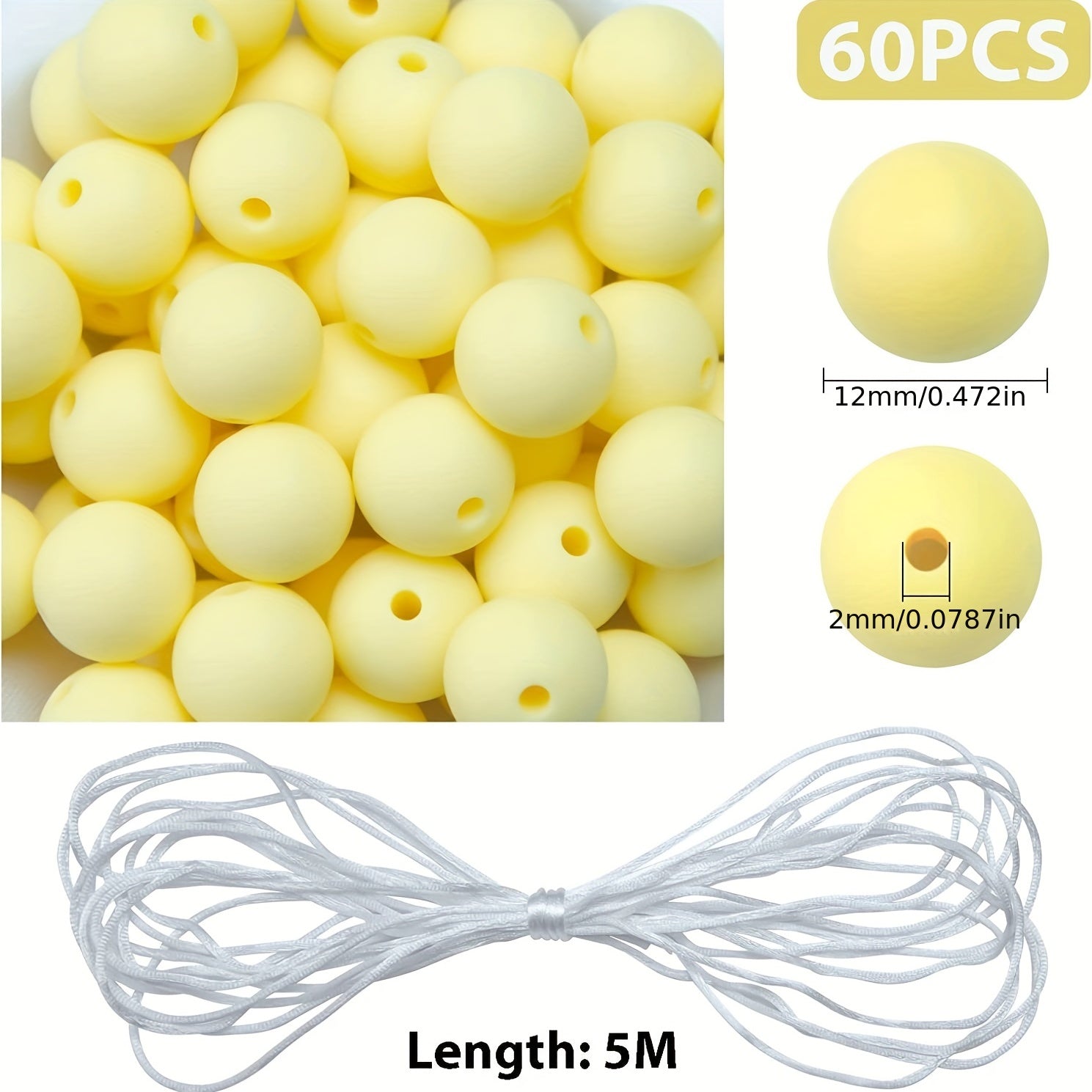 This set includes 60pcs 12mm silicone loose beads that can be used for making baby necklaces, bracelets, wristbands, keychains, pacifier chains, and bead strings. It also comes with beading thread for easy crafting.