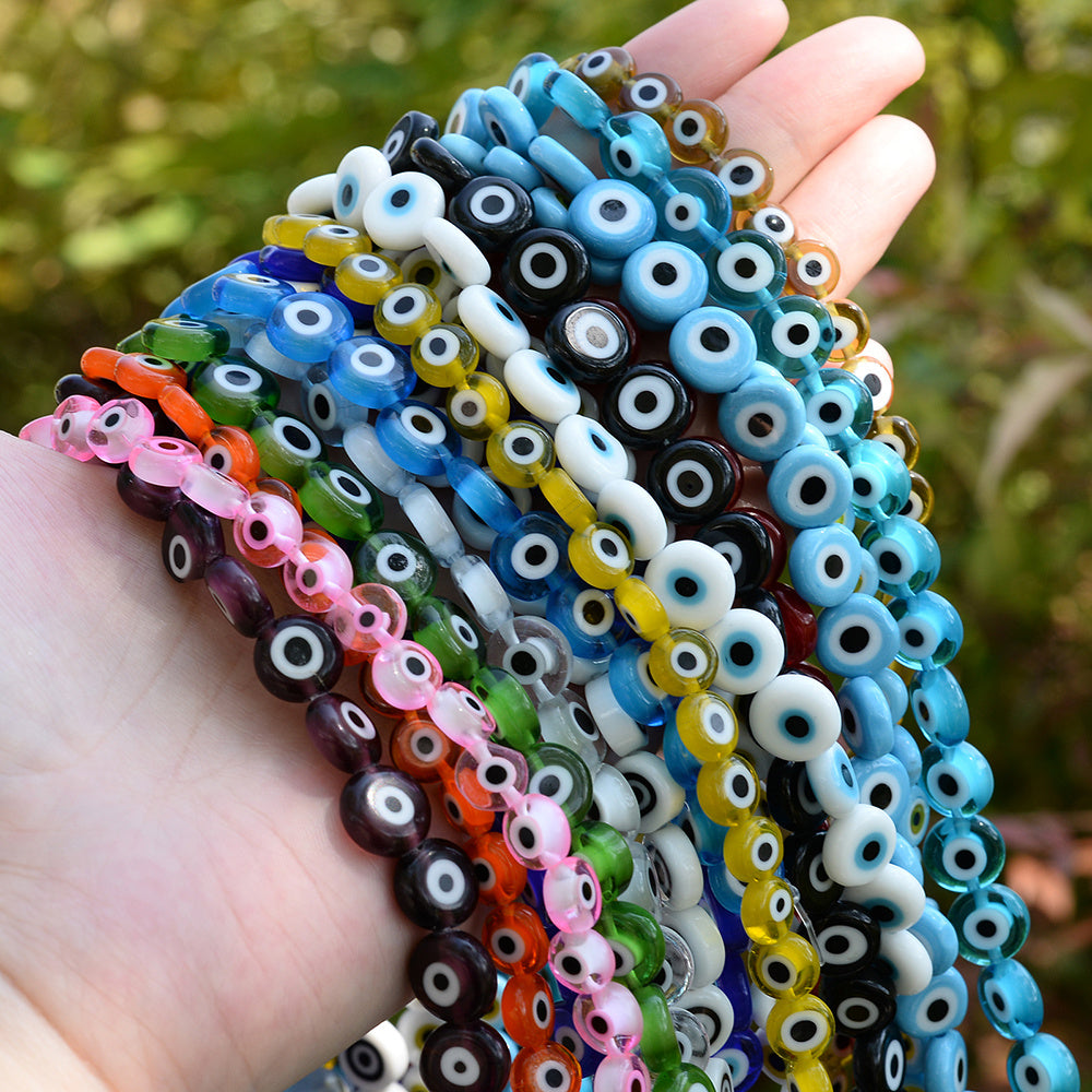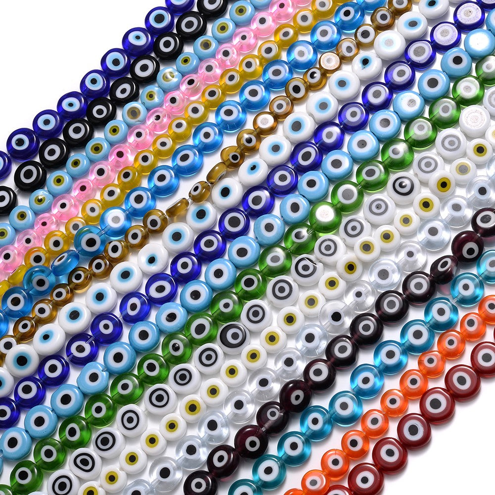 Add a touch of charm to your jewelry creations with these multicolor glass evil eye beads. Ideal for bangles and earrings, these flat round beads measure 6mm (0.24inch) each.