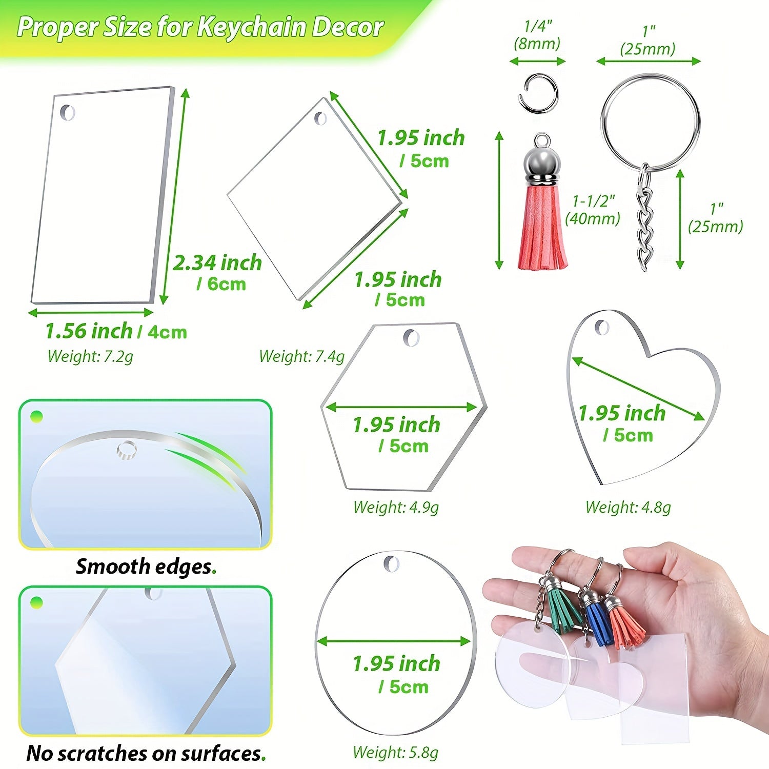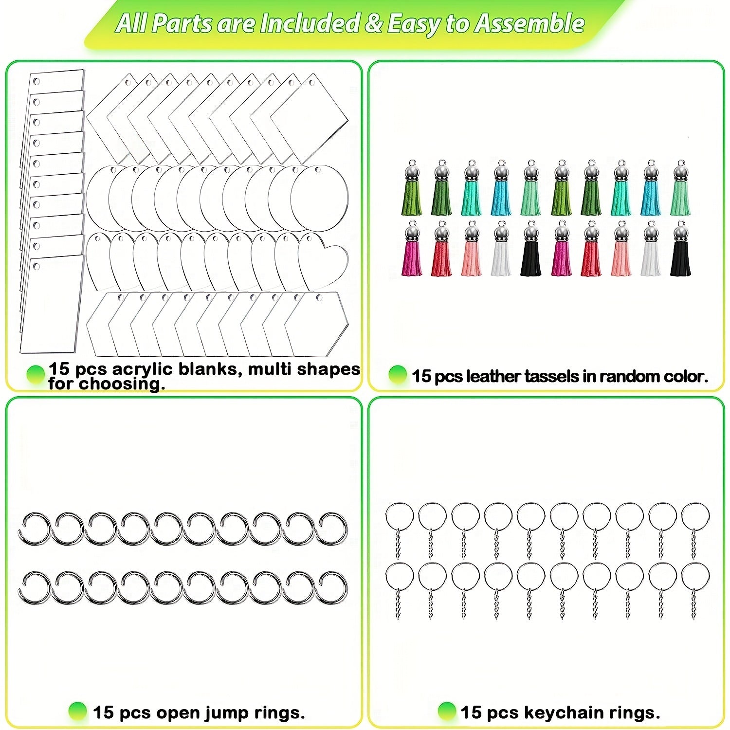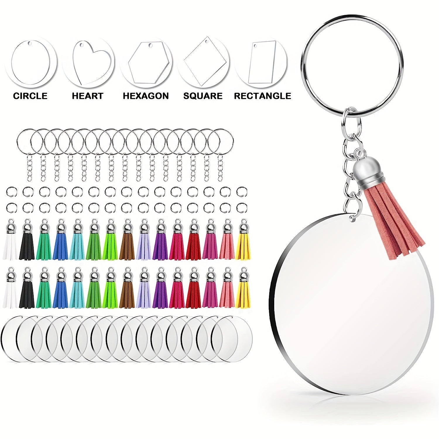 Create your own personalized keychains with this kit that includes 60 acrylic keychain blanks, hardware, and tassels. Perfect for DIY projects or gifts.