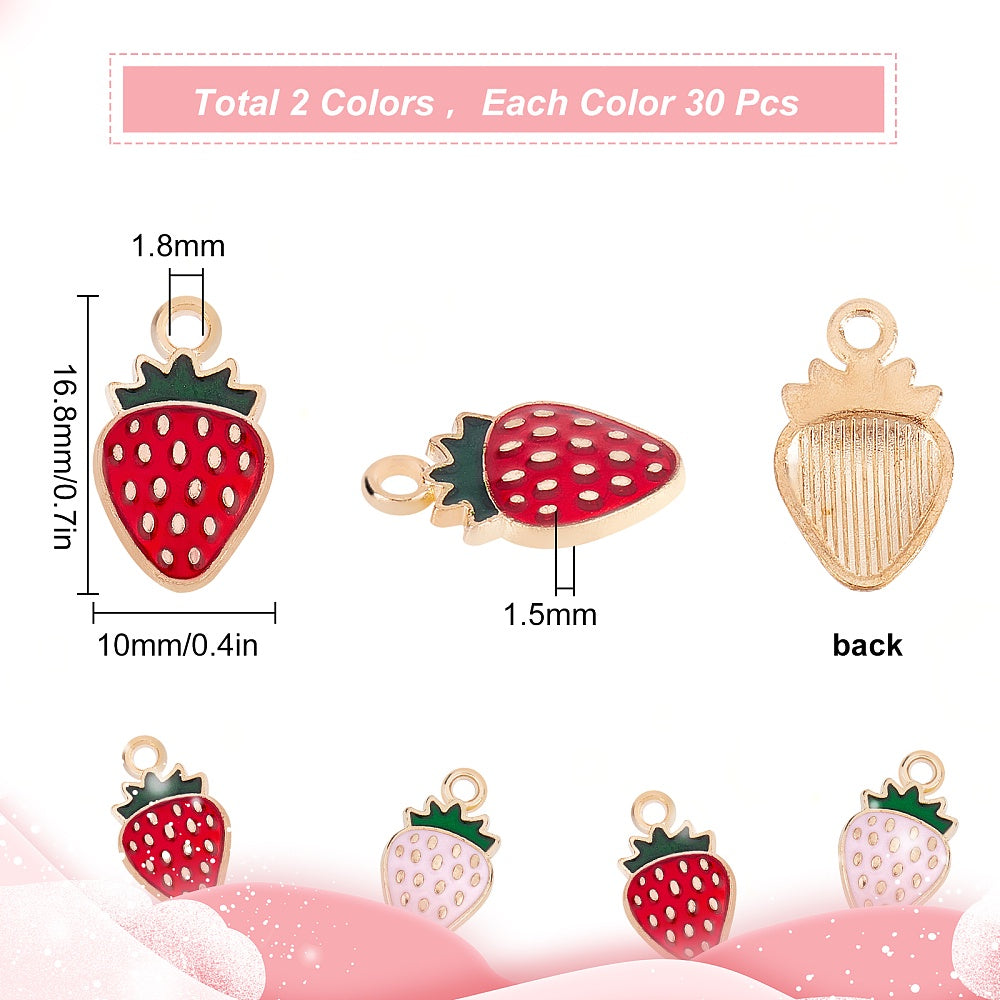 Add a fruity touch to your jewelry designs with these enamel strawberry charms. Each pack includes 60 flatback charms in pink and red colors, perfect for making cute fruit-themed earrings and accessories.