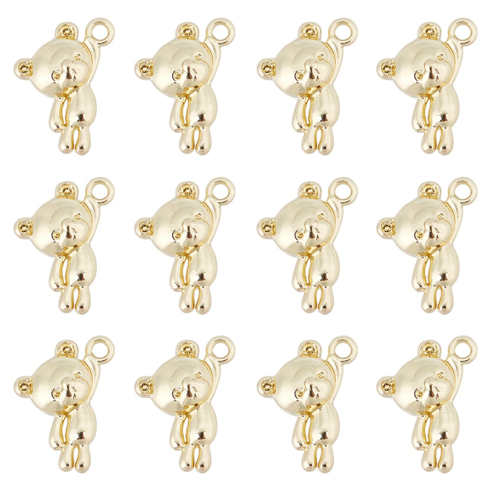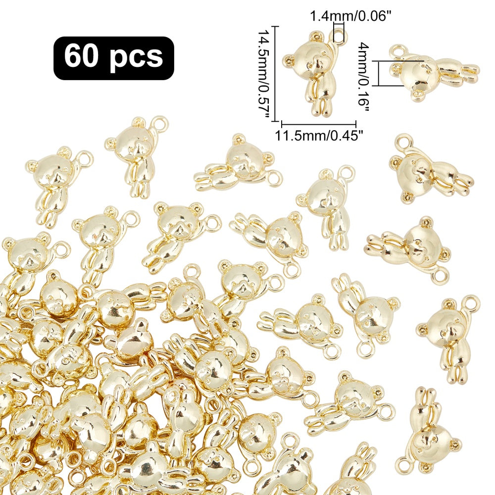 This box contains 60 adorable light golden little bear alloy pendants that are perfect for creating your own earrings, bracelets, necklaces, and other accessories.