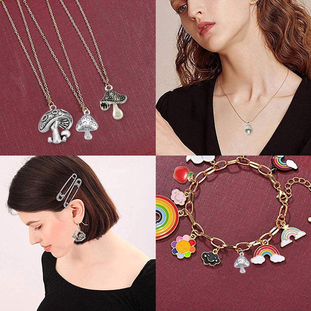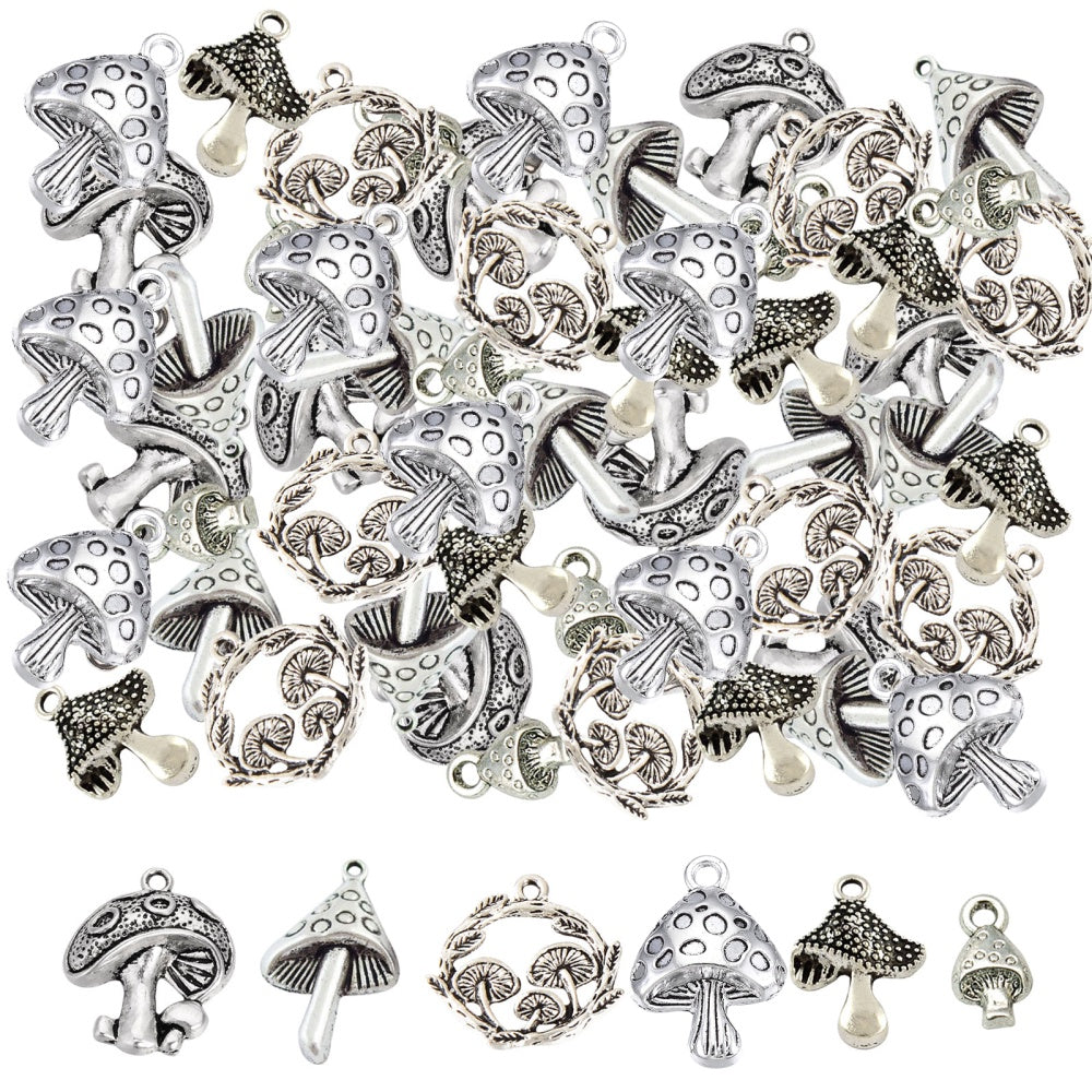 This box contains 60 pieces of mushroom-shaped alloy pendants in 6 different styles, perfect for DIY jewelry making. Ideal for creating earrings, necklaces, bracelets, and more.