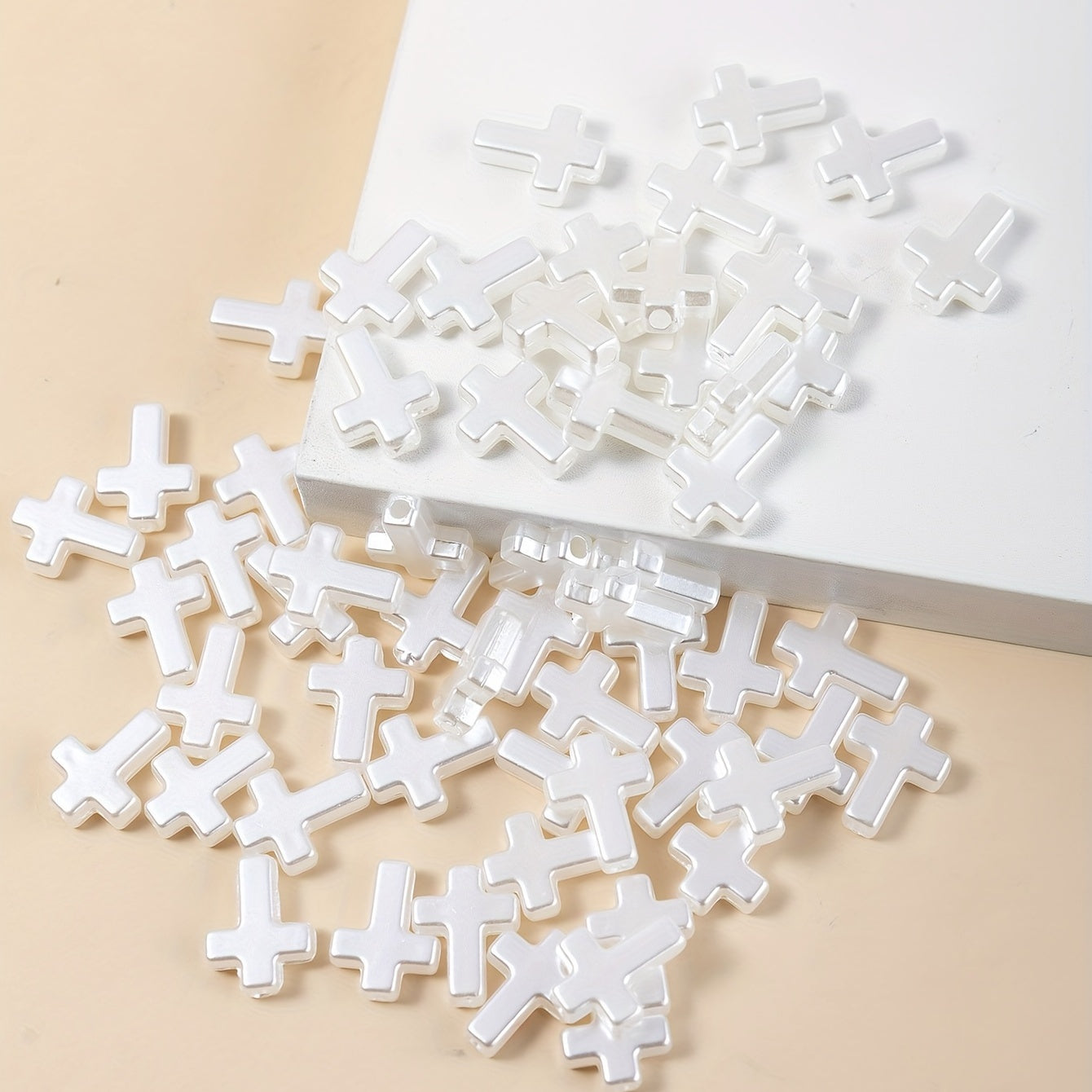 These 60pcs pearly cross spacer beads are ideal for creating beautiful jewelry pieces like bracelets and necklaces. Perfect for DIY craft projects.