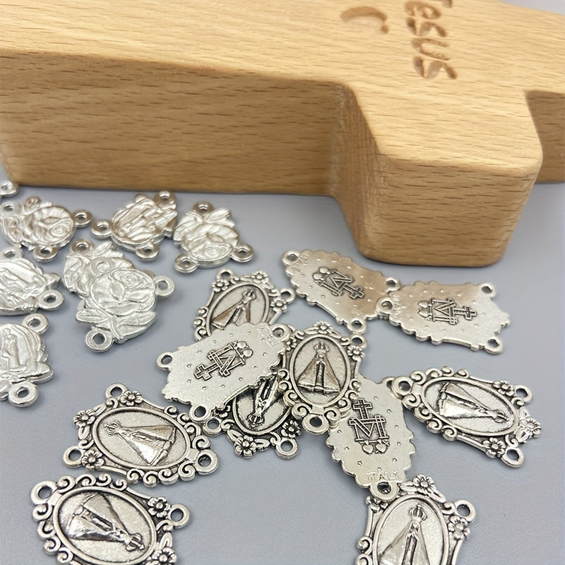 Enhance the beauty of your rosary jewelry with these 60pcs silvery or golden religious figure pattern hangings. Perfect for creating elegant and meaningful designs.