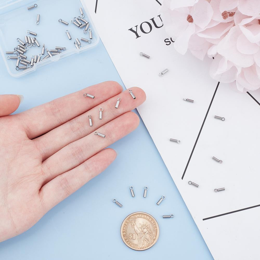 Get this pack of 60 stainless steel cord tube ends suitable for leather cord bracelets and jewelry making. The tube ends have a 1mm inner diameter.