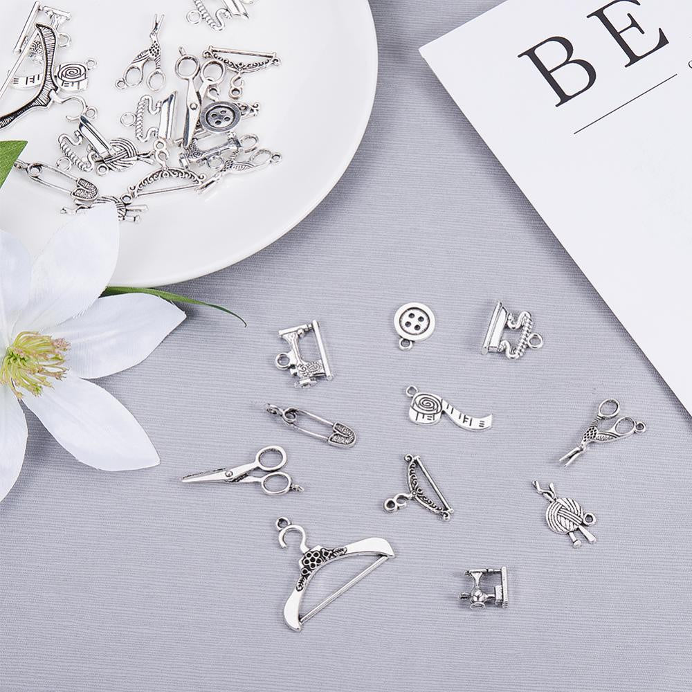 Get 60pcs of mixed shape tool theme antique silver alloy pendants for creating your own unique necklaces and bracelets. Perfect for DIY jewelry projects.