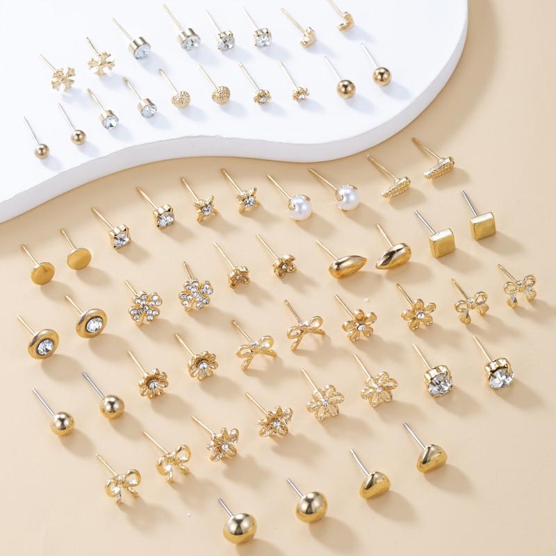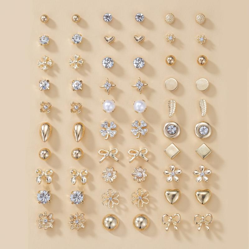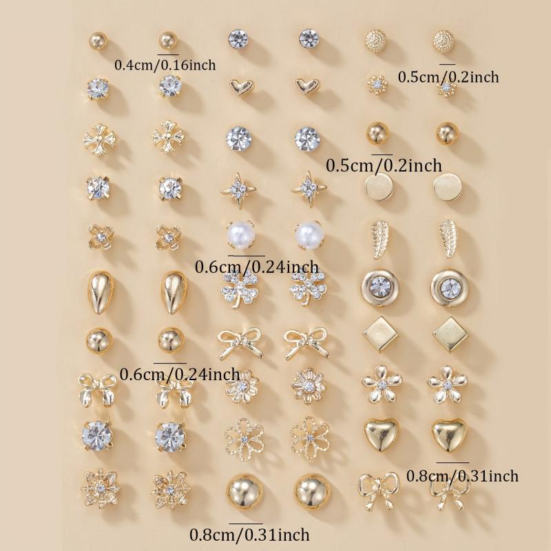 60pcs Women's Earring Set with Faux Pearls & Rhinestones