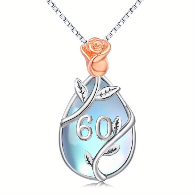 Celebrate a special woman's 60th birthday with this elegant sterling silver pendant necklace featuring a rose moonstone. Perfect gift for mom, grandmother, wife, or for Christmas and anniversaries.
