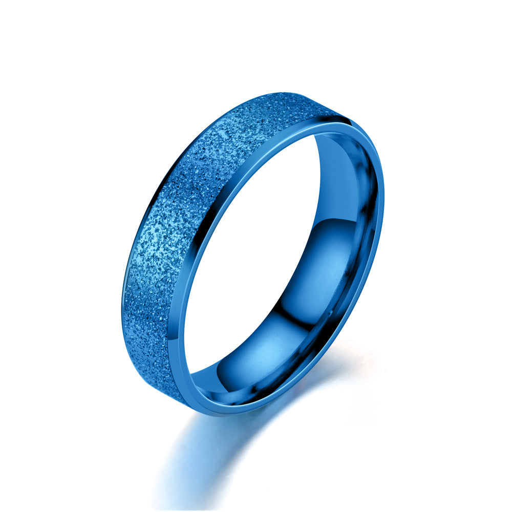 This couple ring set features a frosted finish for a modern look. Made of durable stainless steel, perfect for engagement or as a gift.