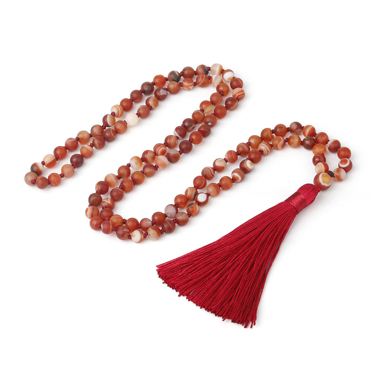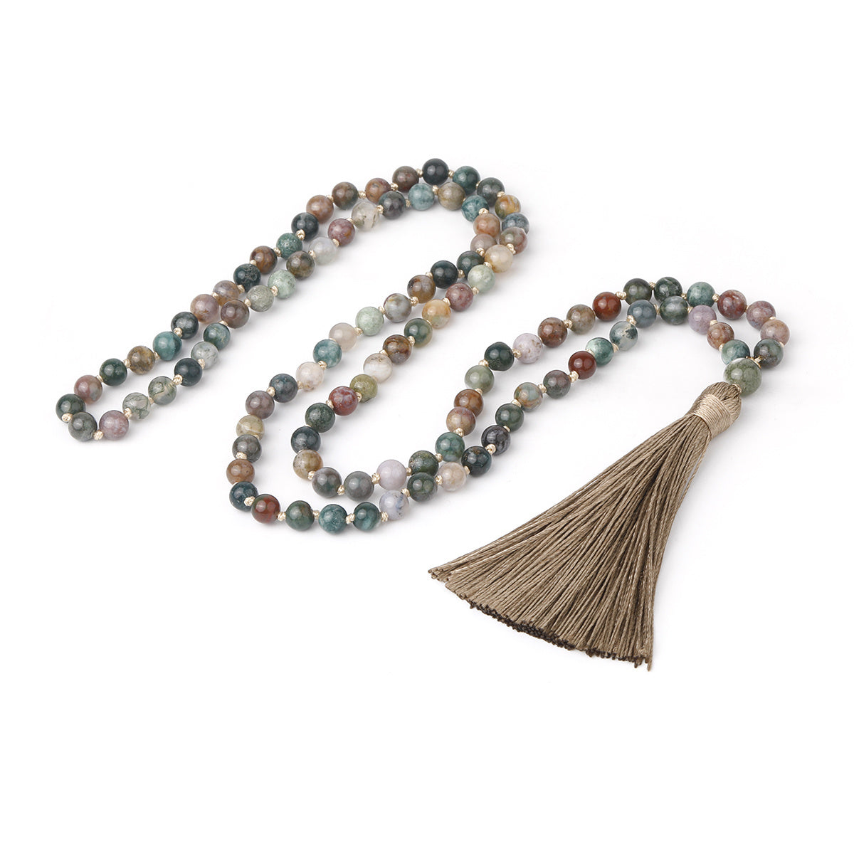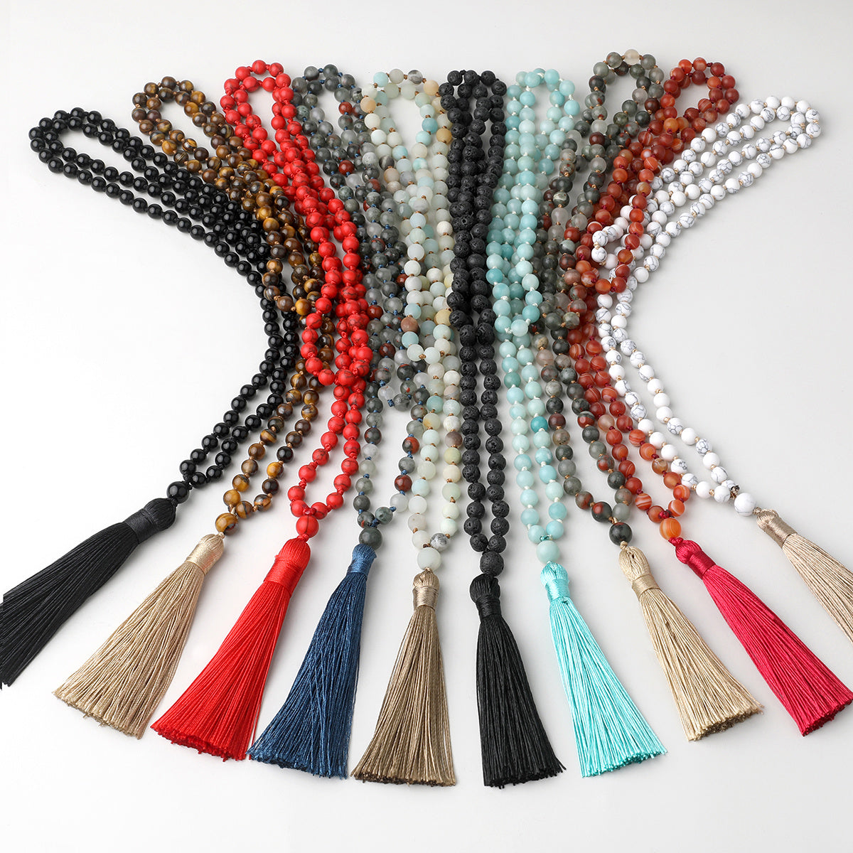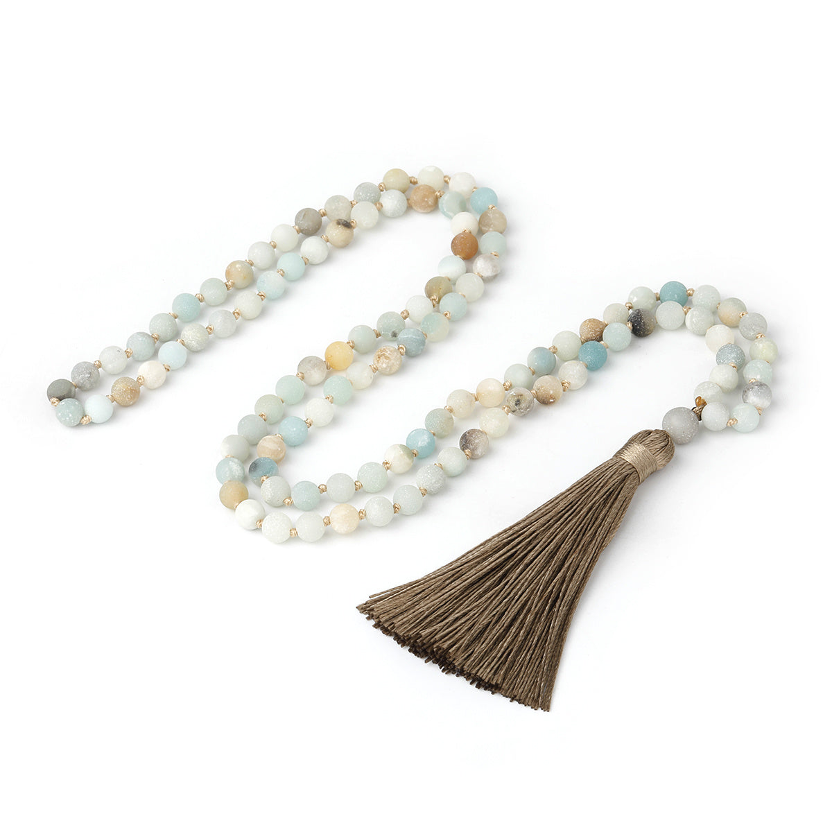 This beautiful necklace features 6mm natural stone beads that are knotted for added durability and style.