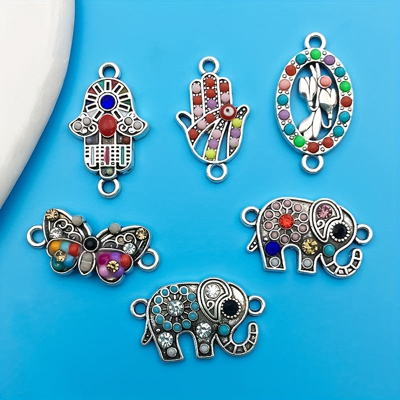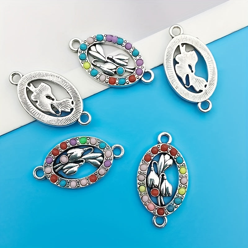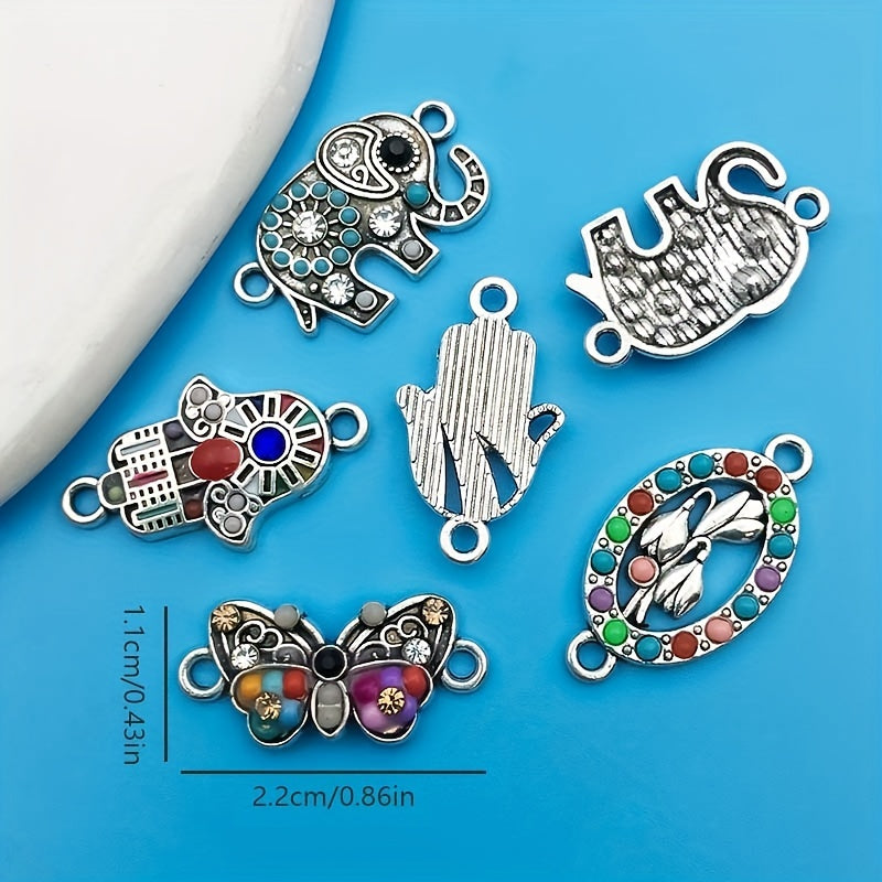 Add a touch of color and elegance to your jewelry projects with these 6 colorful crystal connectors featuring an antique silvery finish. These connectors are perfect for creating unique bracelets, necklaces, and more.