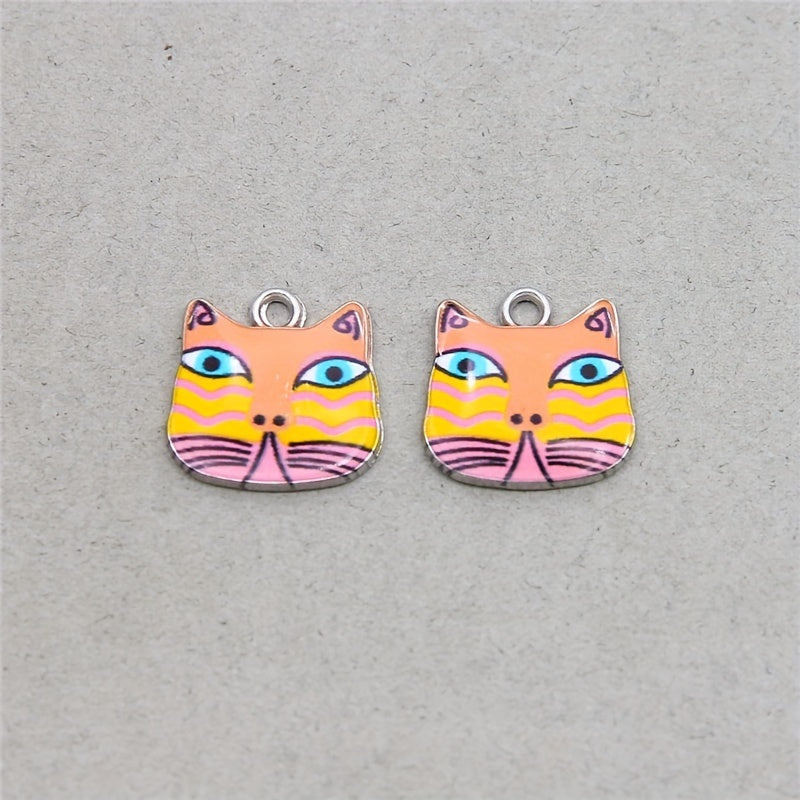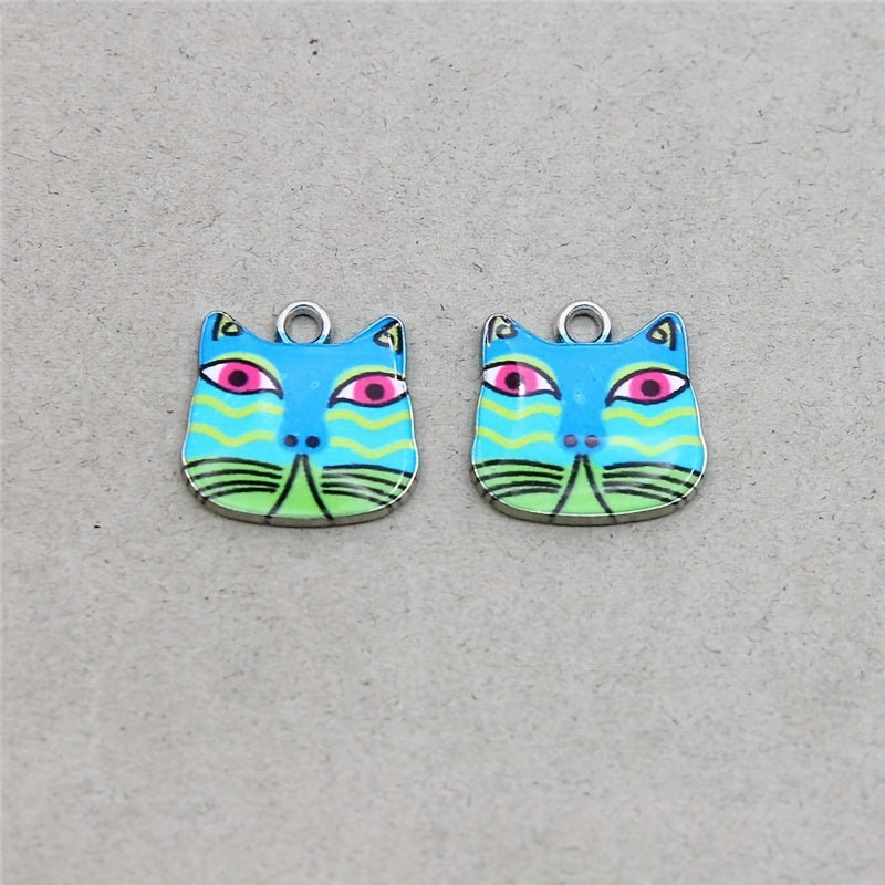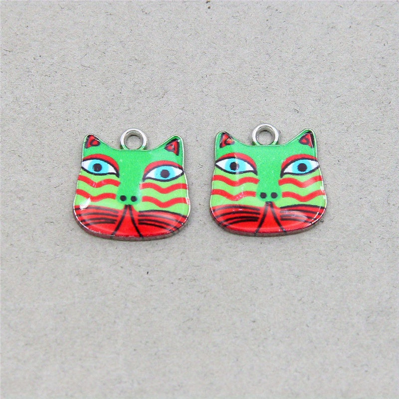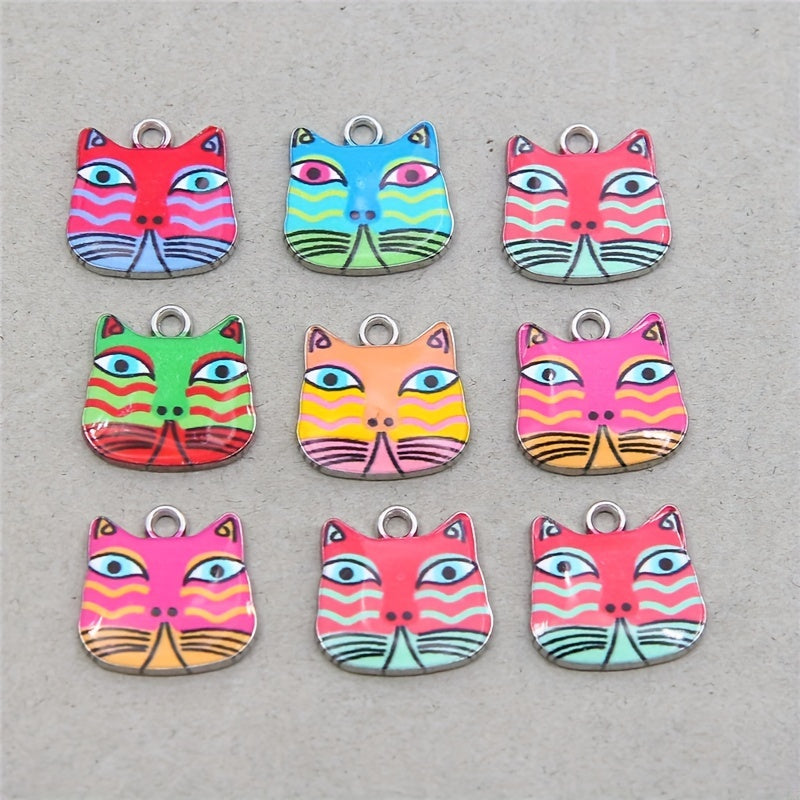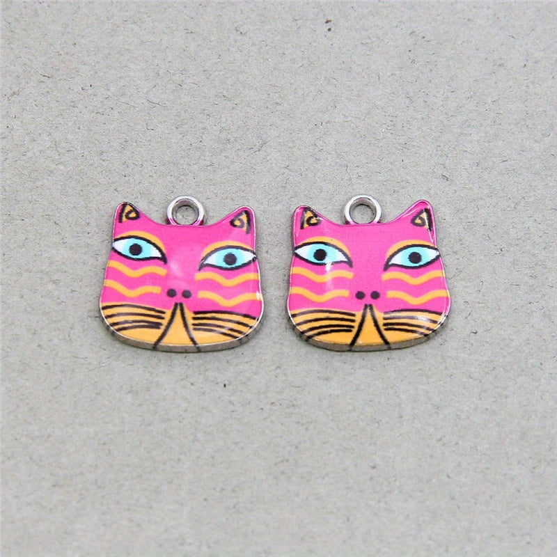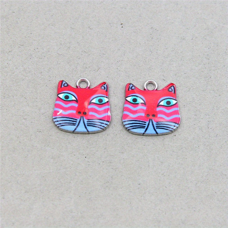 Add a touch of whimsy to your jewelry with these colorful enamel cat head pendants. Perfect for earrings, bracelets, necklaces, and more.