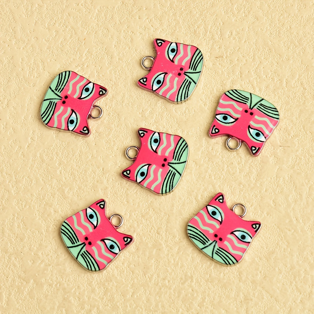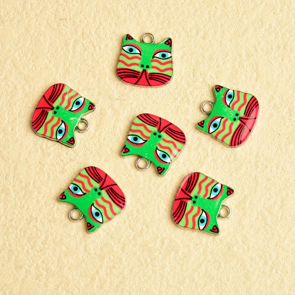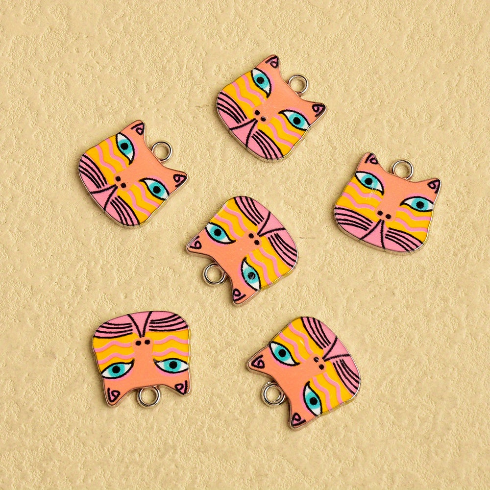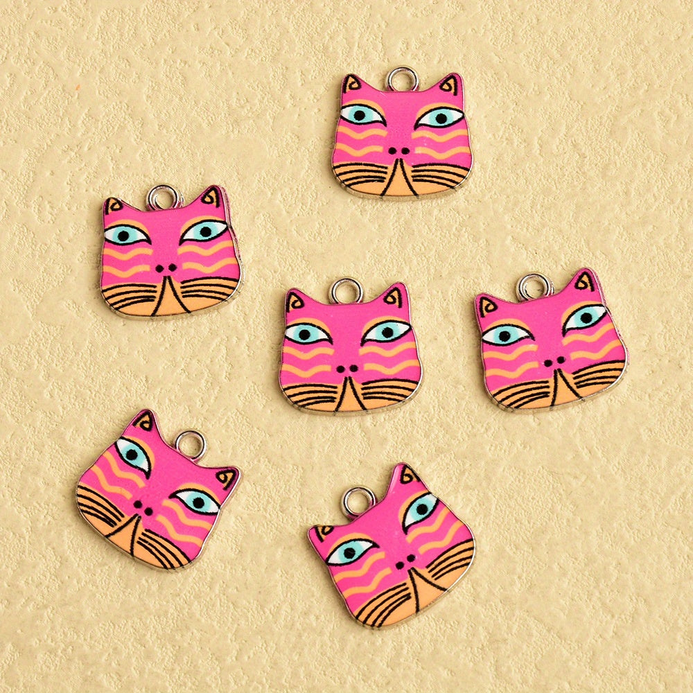 Get this pack of 6 charming enamel animal charms featuring adorable kittens. Perfect for crafting and creating pet-themed jewelry.