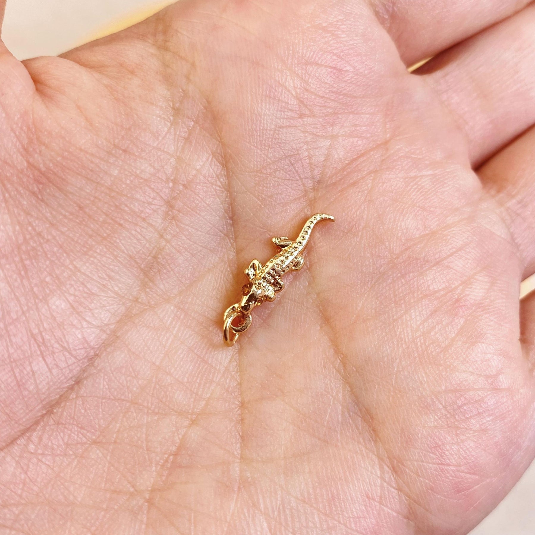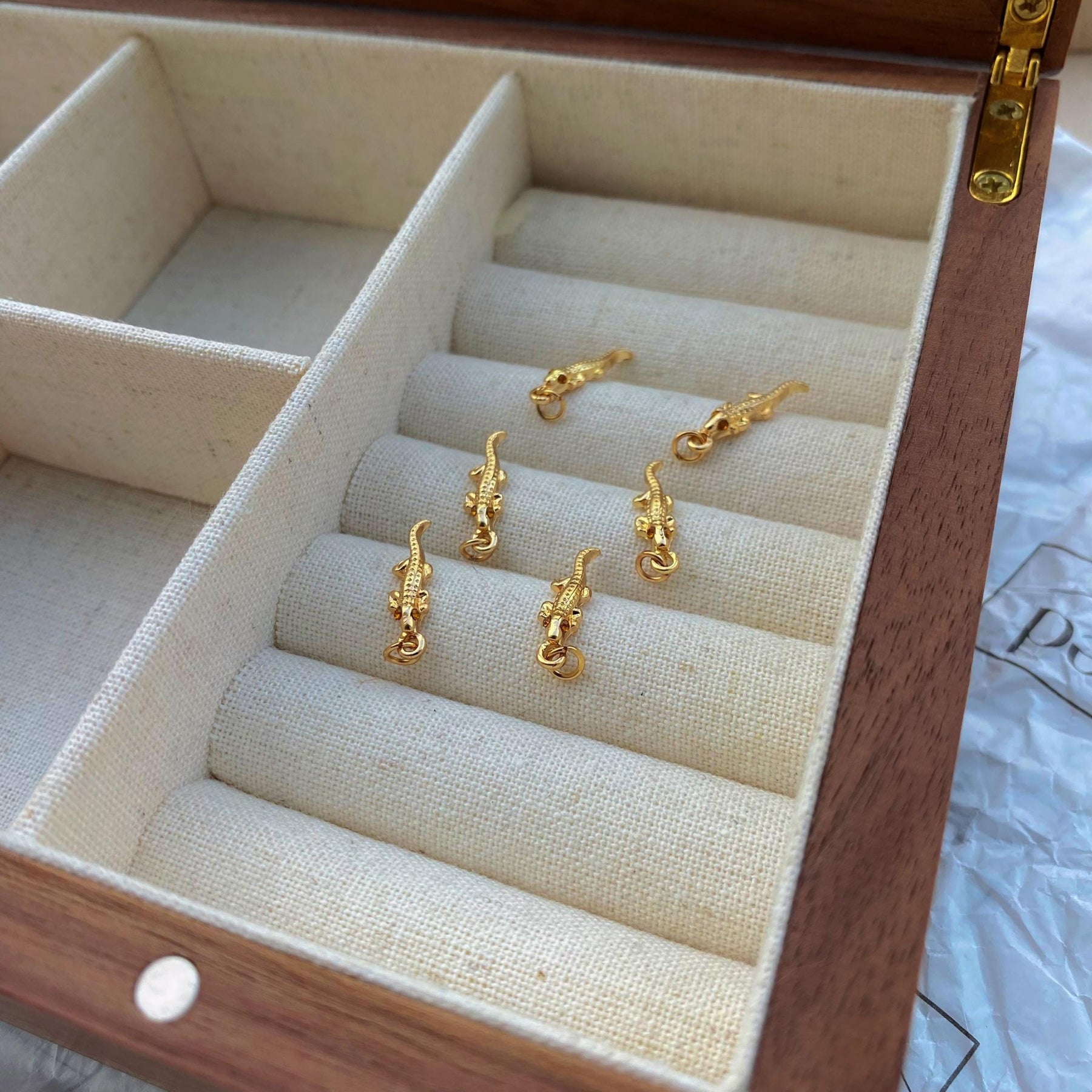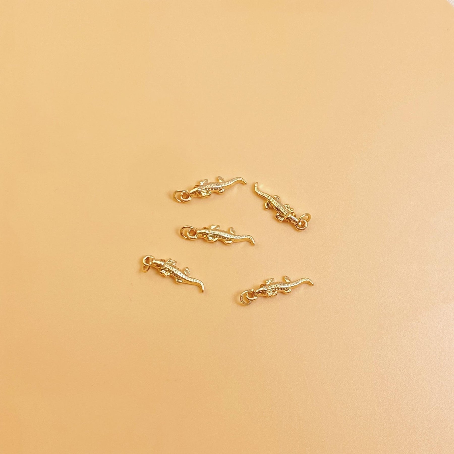 Enhance your jewelry creations with these 6pcs golden crocodile alloy pendants. Perfect for earrings, bracelets, necklaces, and other accessories.