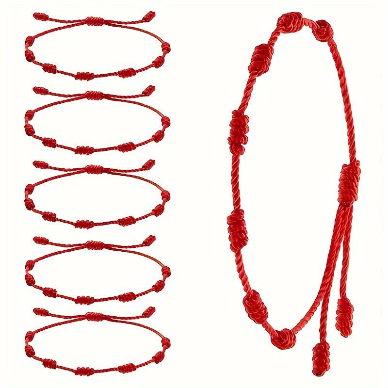 This set of 6 handcrafted red knot bracelets is perfect for men, women, couples, and friends. Versatile for daily wear or as a thoughtful gift.