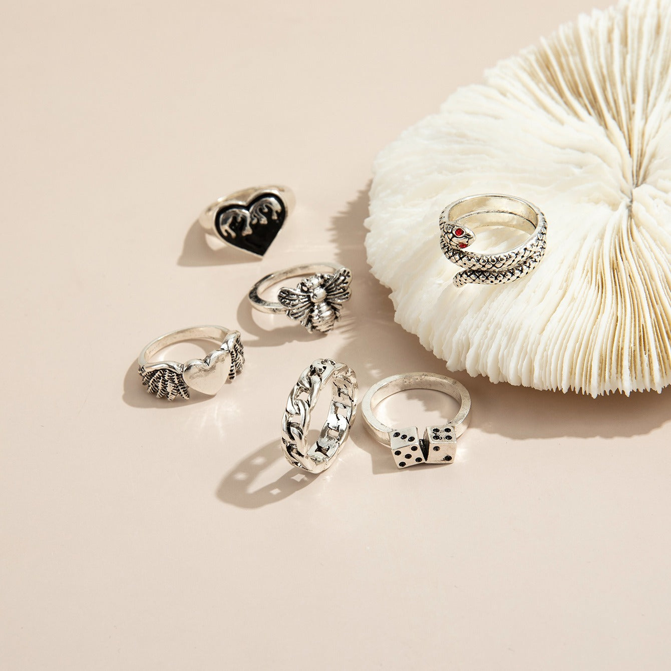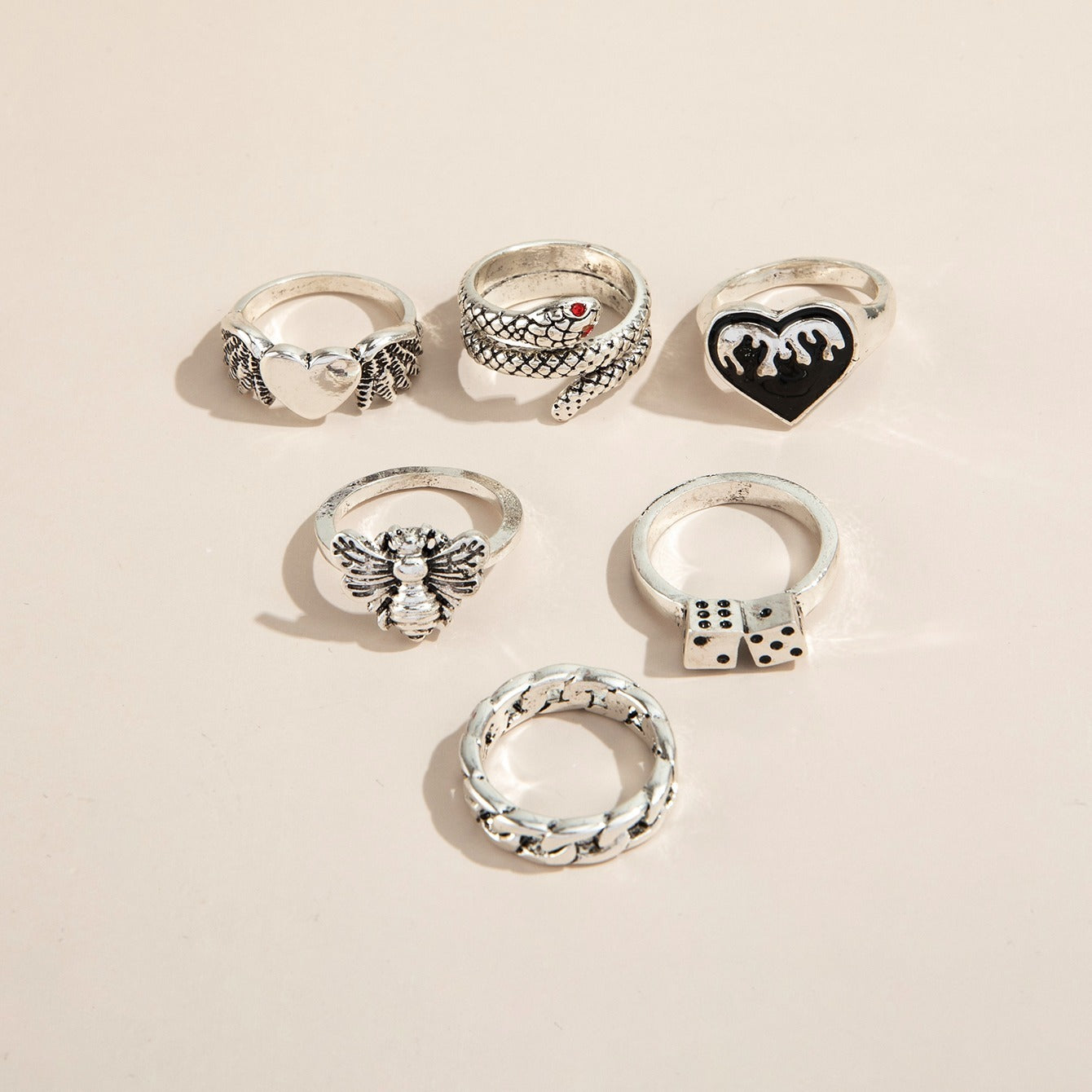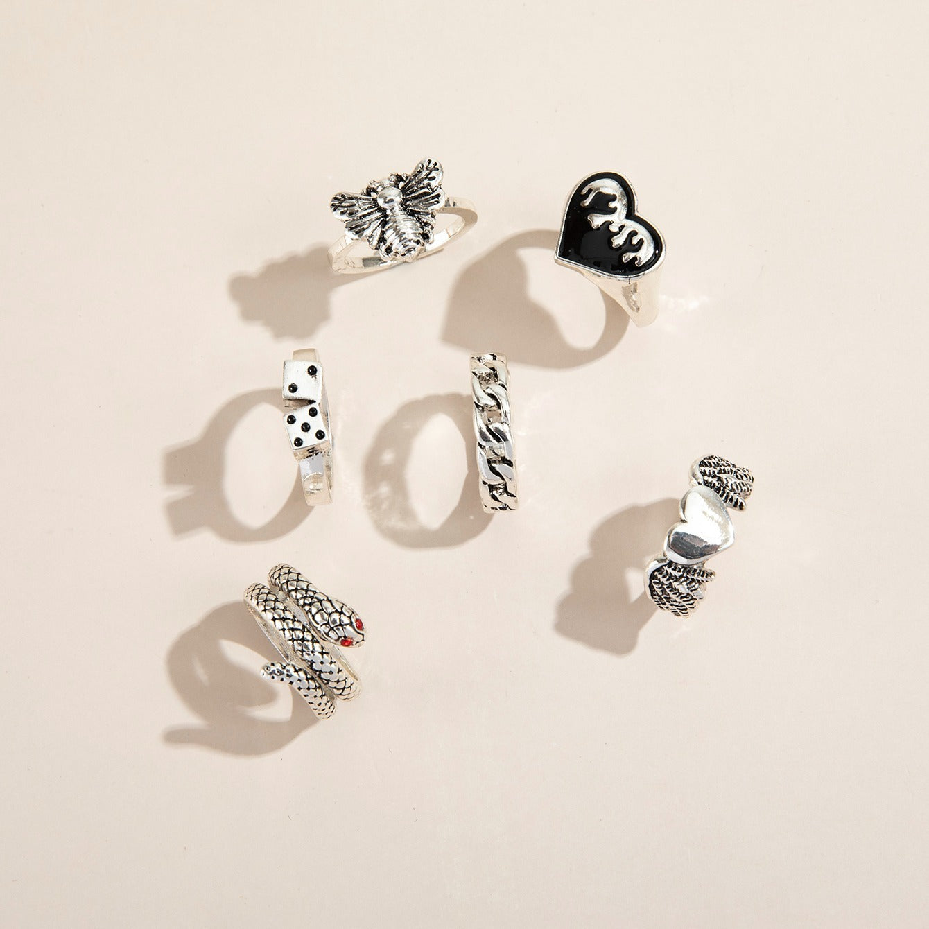 Enhance your style with this set of 6 vintage metal rings. Perfect for daily wear or special occasions.