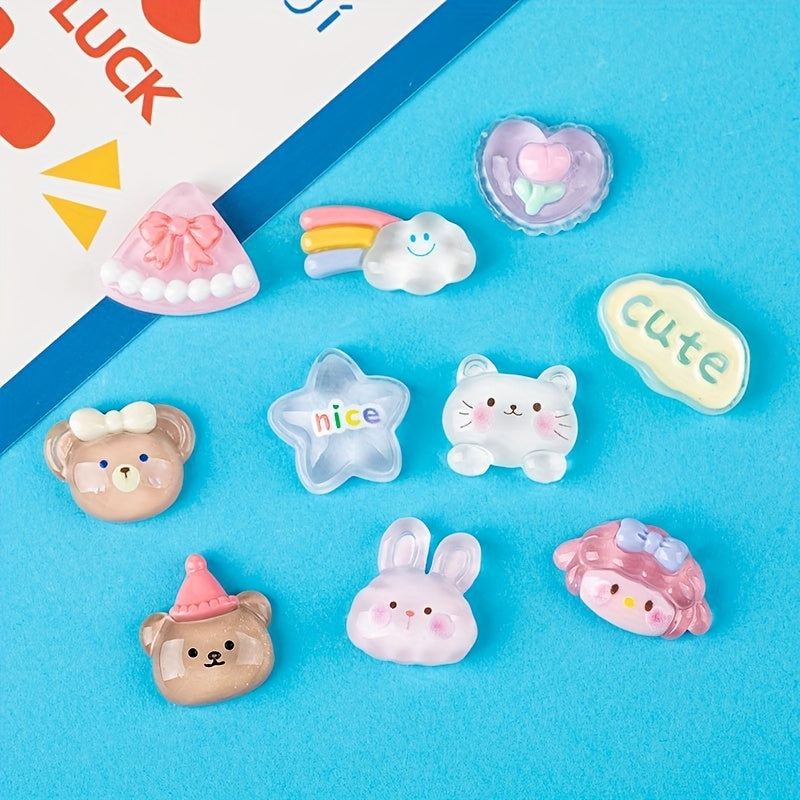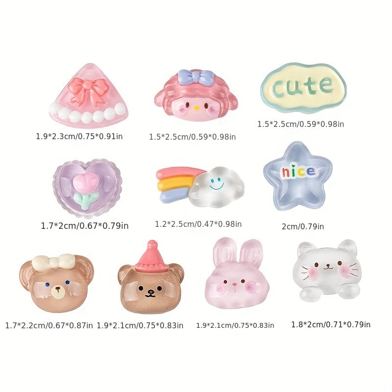 This pack of 6 resin accessories features cute cartoon ice bear designs, perfect for DIY projects like mobile phone case decoration. Made with transparent material, these patches can also be used for hair accessories and more.