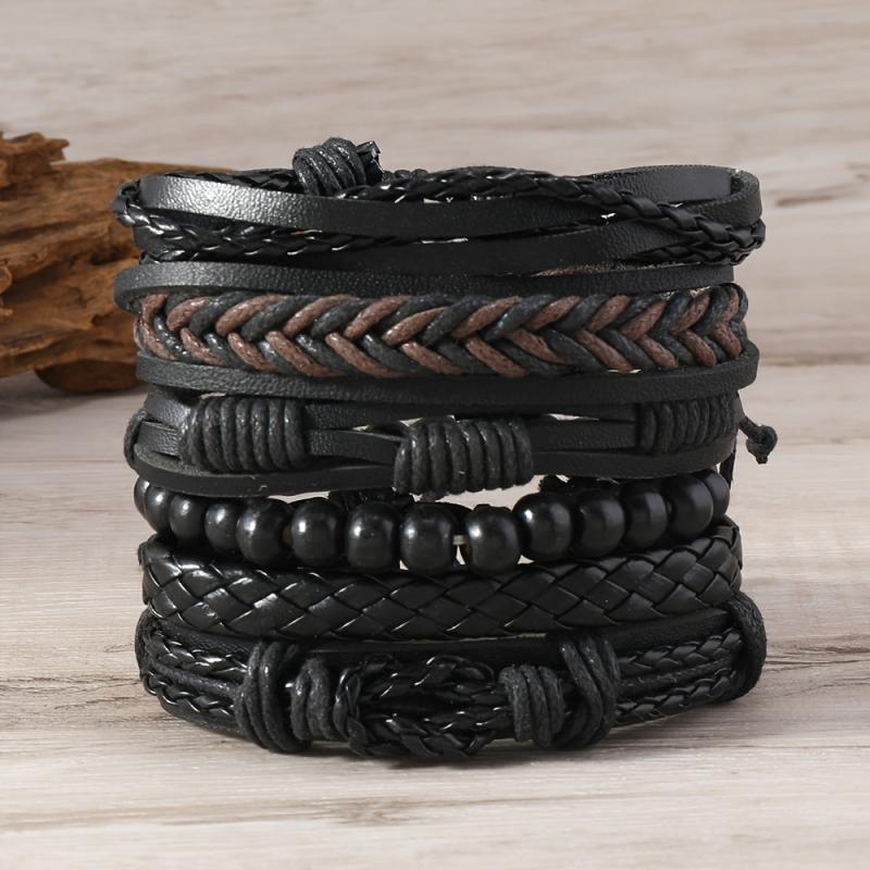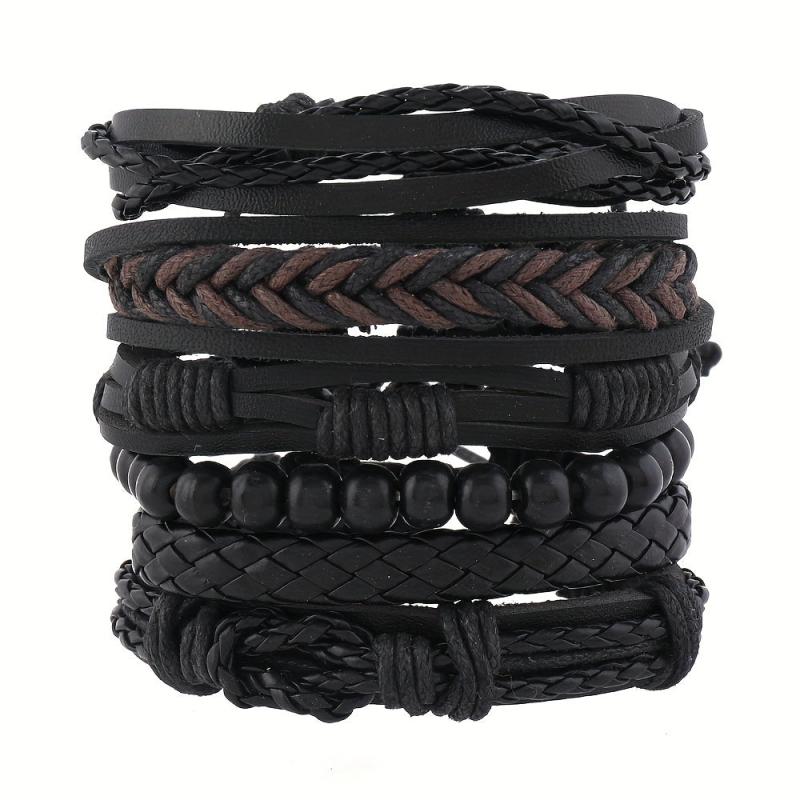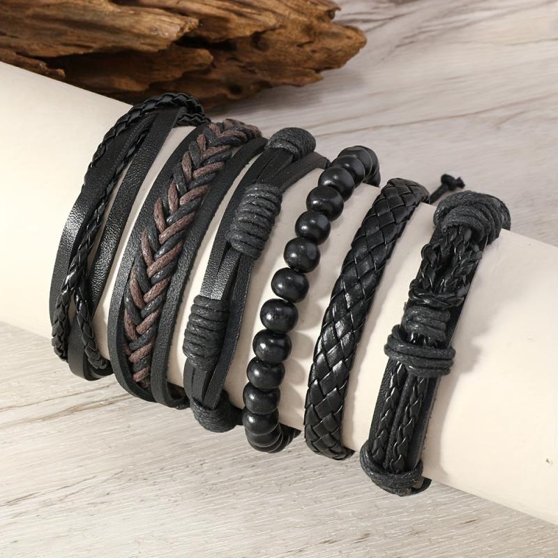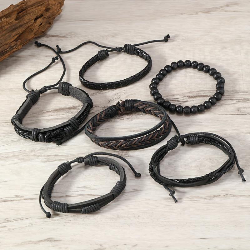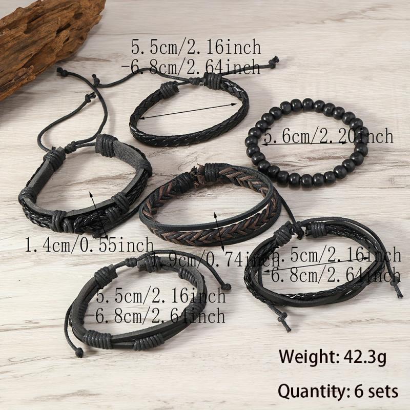 This set includes 6 pcs of retro PU leather bracelets designed in a punk style for men. These bracelets are perfect for adding a touch of edgy flair to your outfit.