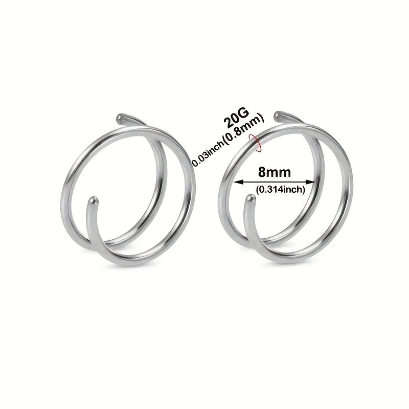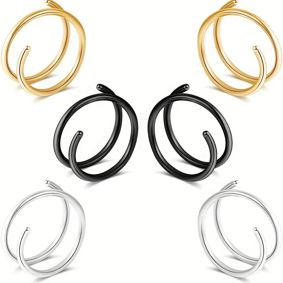 This set includes spiral spring earrings, ear studs, ear bone rings, small earrings, and nose decoration. Made of high-quality stainless steel.