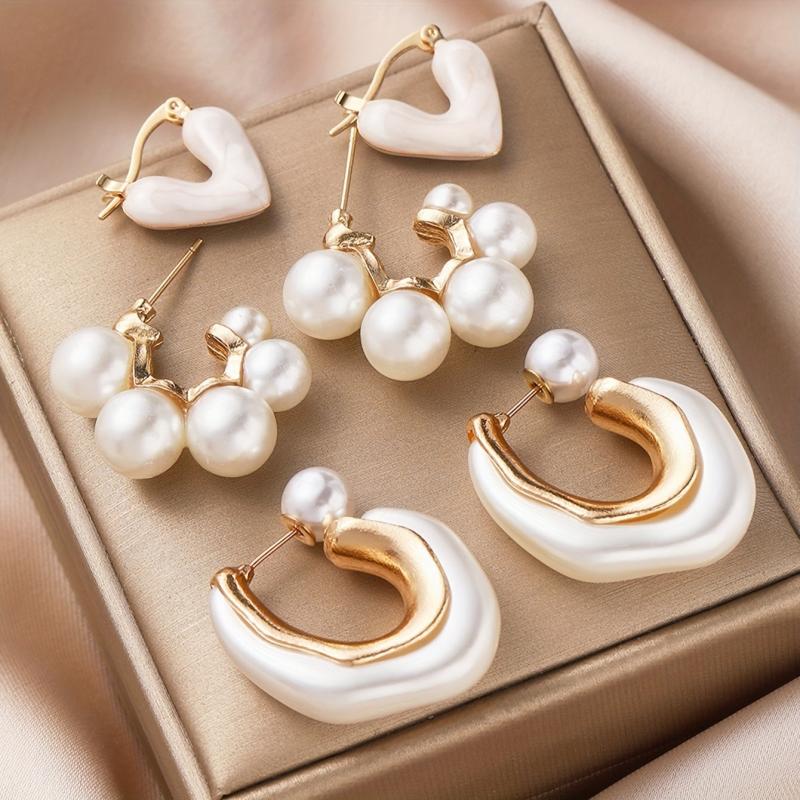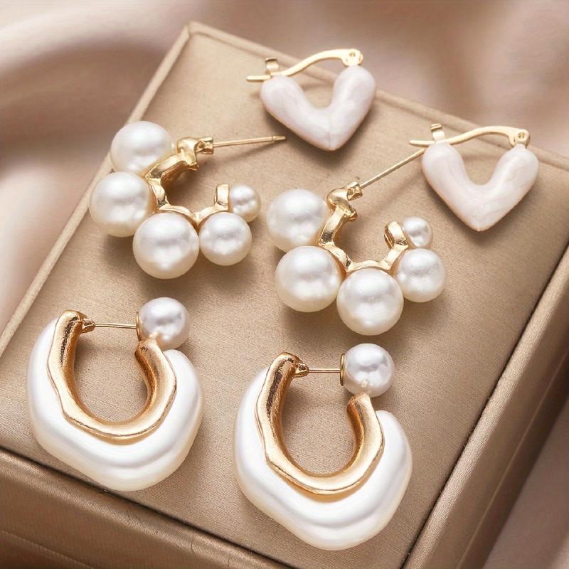 Add a touch of vintage charm to your casual attire with this 6-piece set of vintage-inspired faux pearl heart earrings. Crafted from alloy with stainless steel posts for durability and comfort.