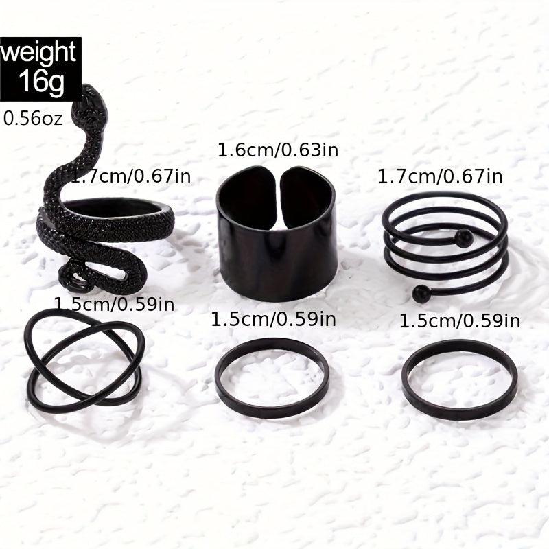 Elevate your style with this set of 6 stacking rings, featuring a gothic snake and X wide band design. Perfect for daily wear or parties.