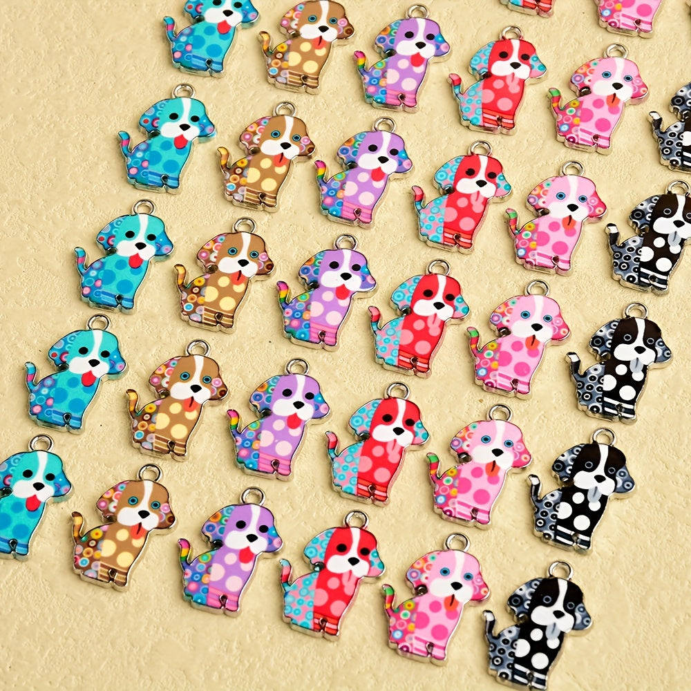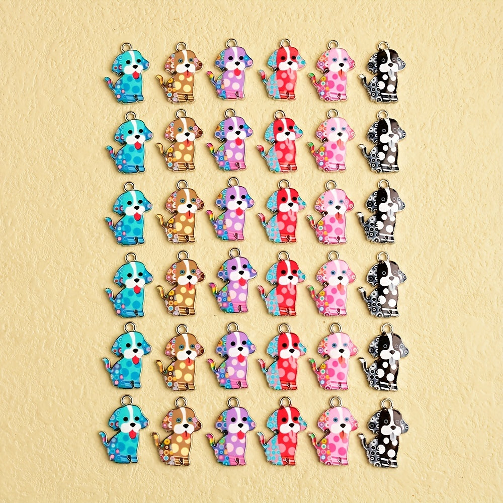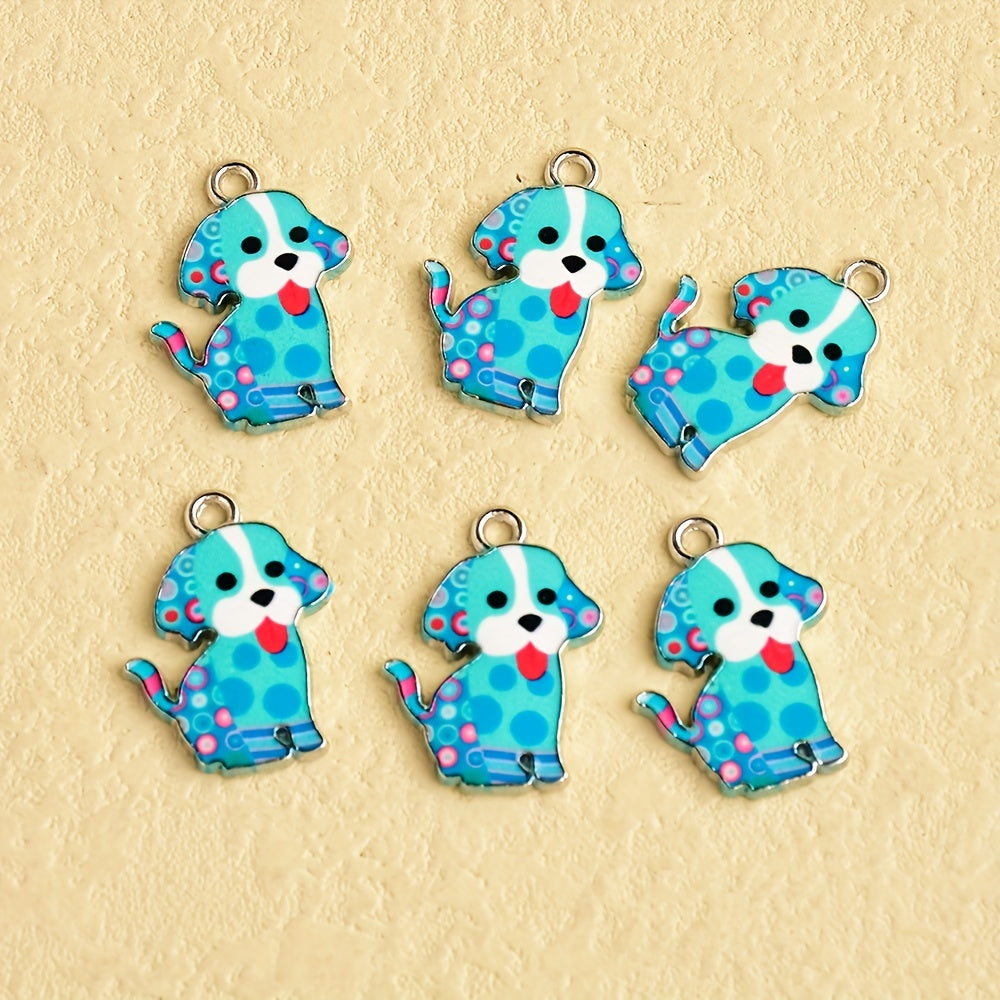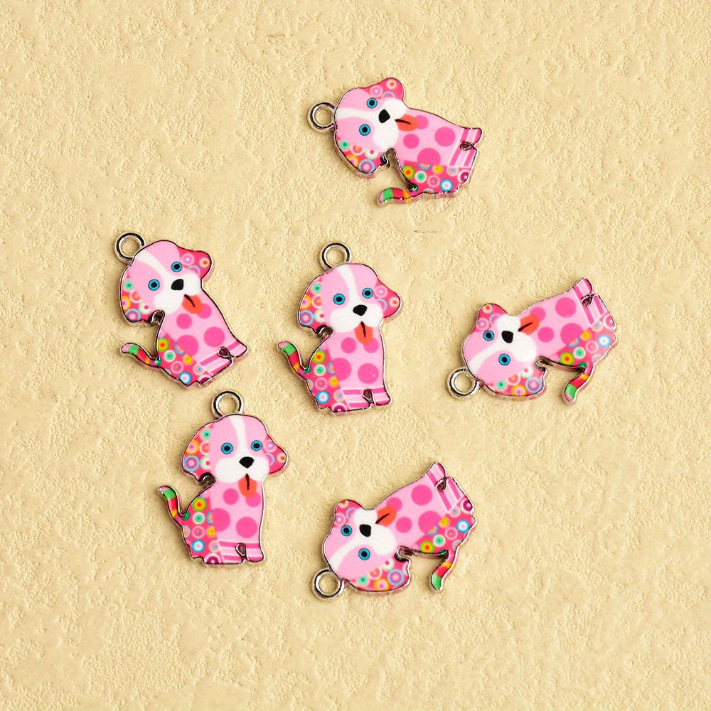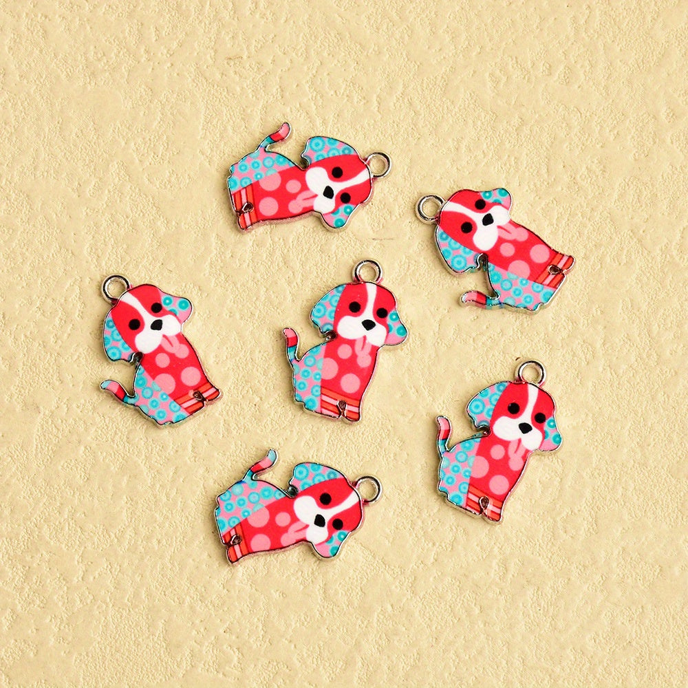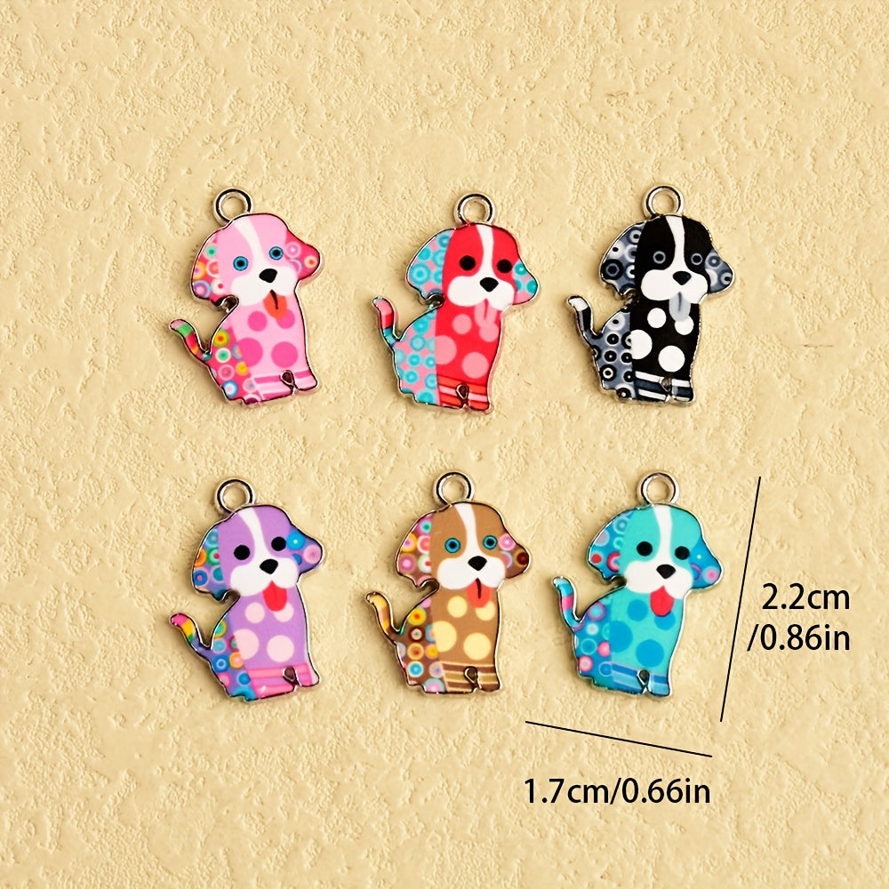 Get this pack of 6 Y2K alloy colorful puppy pendants for your DIY projects. Perfect for creating unique animal jewelry or keychain pendants.