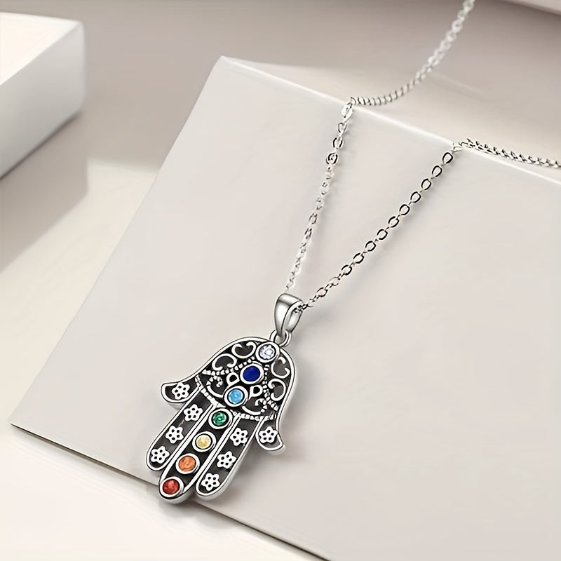 This stylish palm pendant is perfect for chakra healing and energy balance. It makes a great gift for women, perfect for parties, anniversaries, birthdays, and holidays.