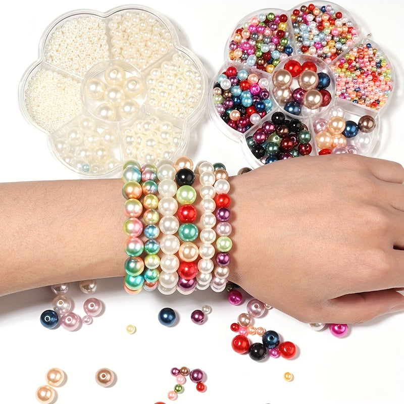 This box contains straight hole poreless pearl beads in beige and mixed colors, perfect for creating bracelets, earrings, and other jewelry accessories. Ideal for DIY projects.
