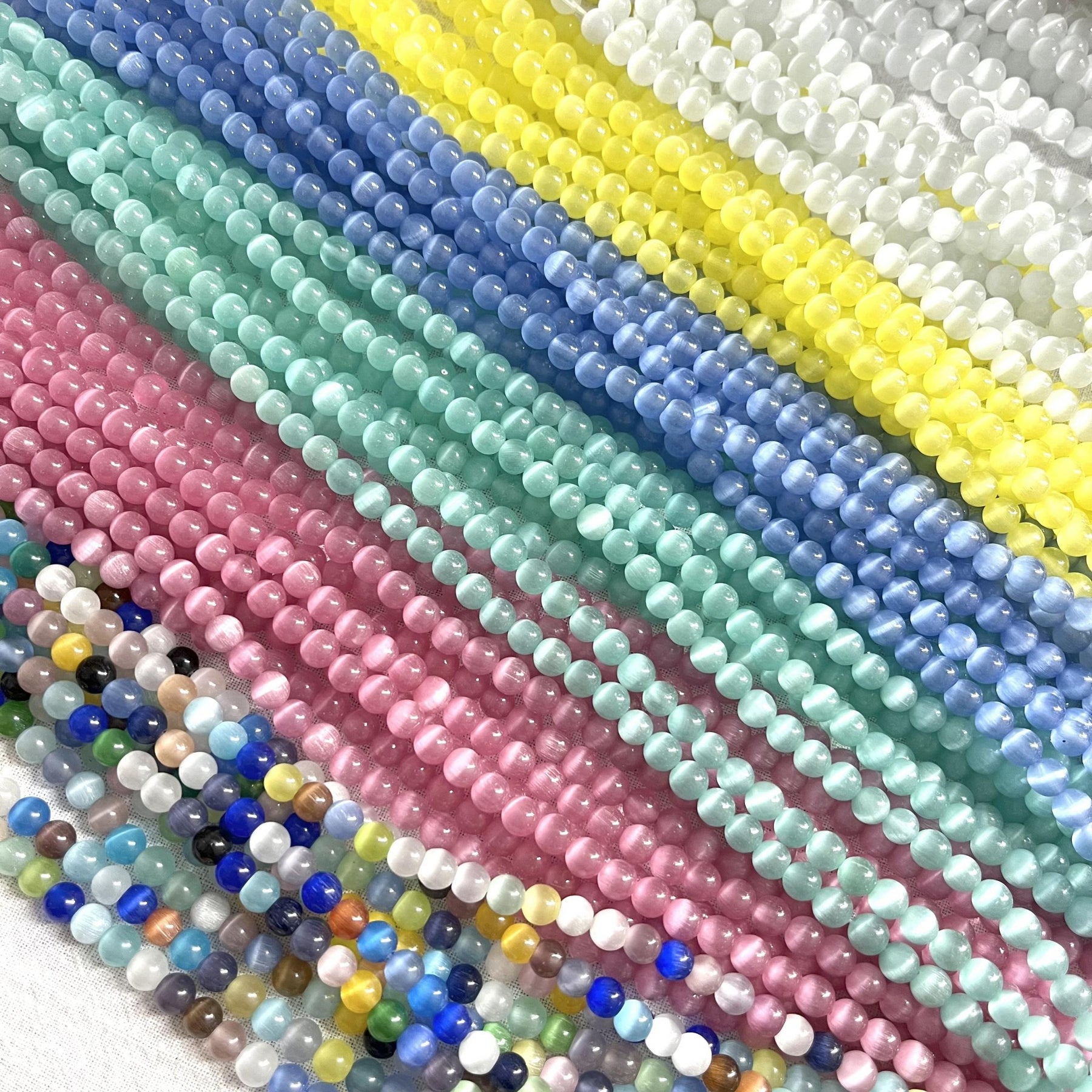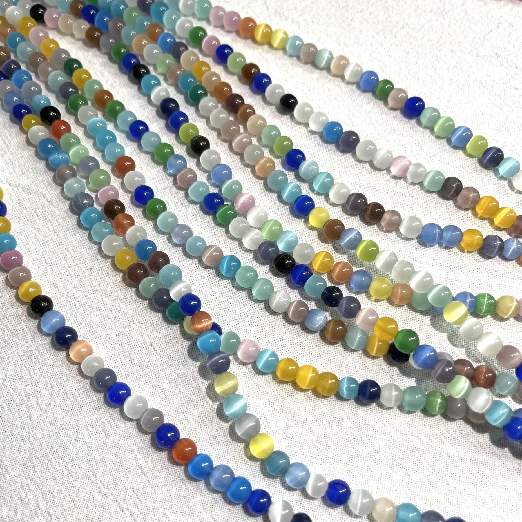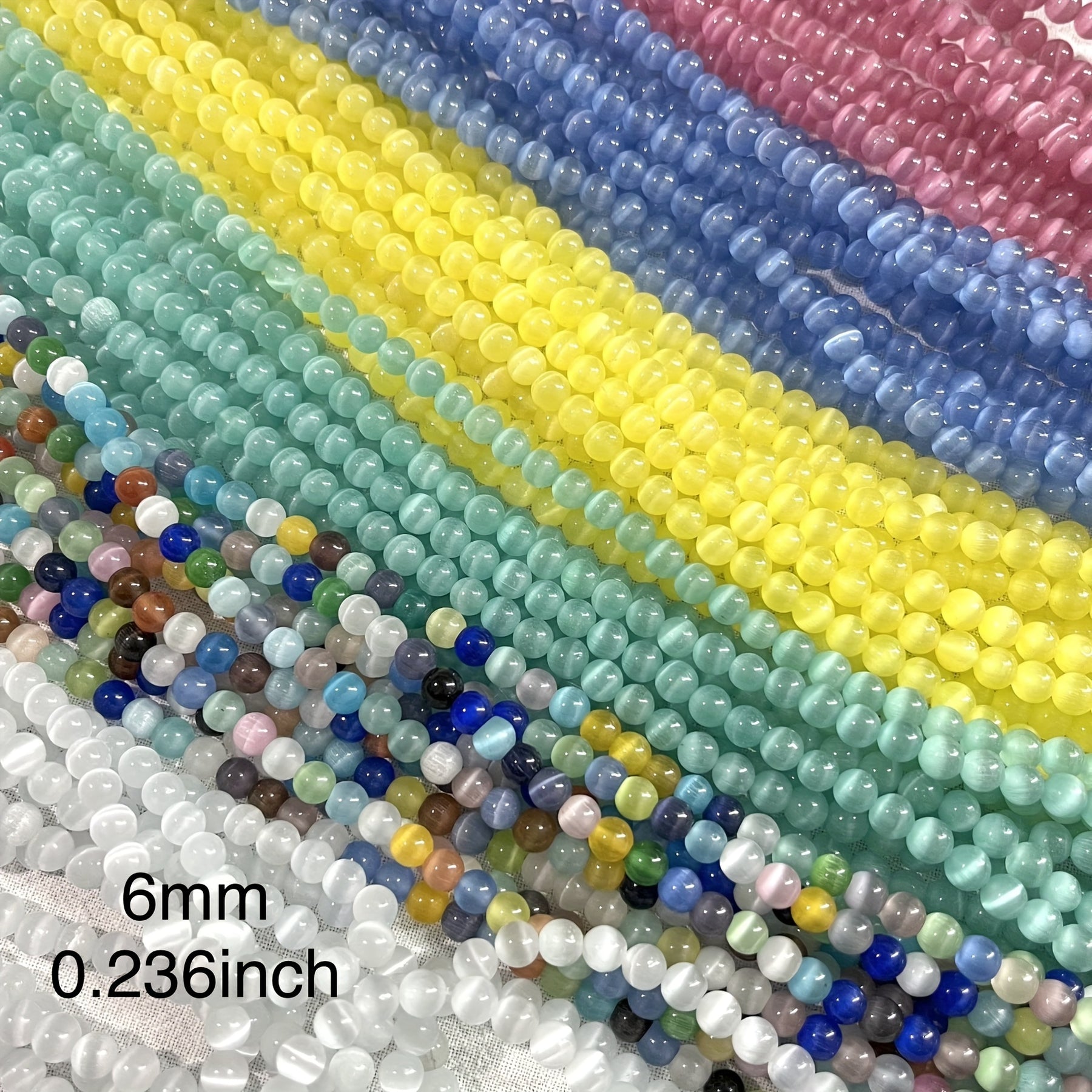Enhance your DIY projects with this set of 70 6mm round cat eye stone beads. Perfect for creating earrings, bracelets, necklaces, and other accessories.
