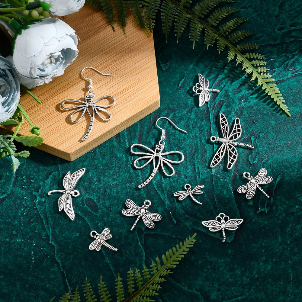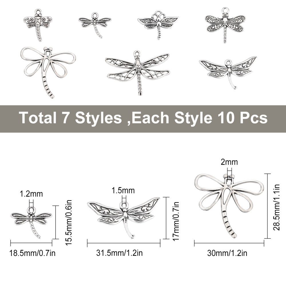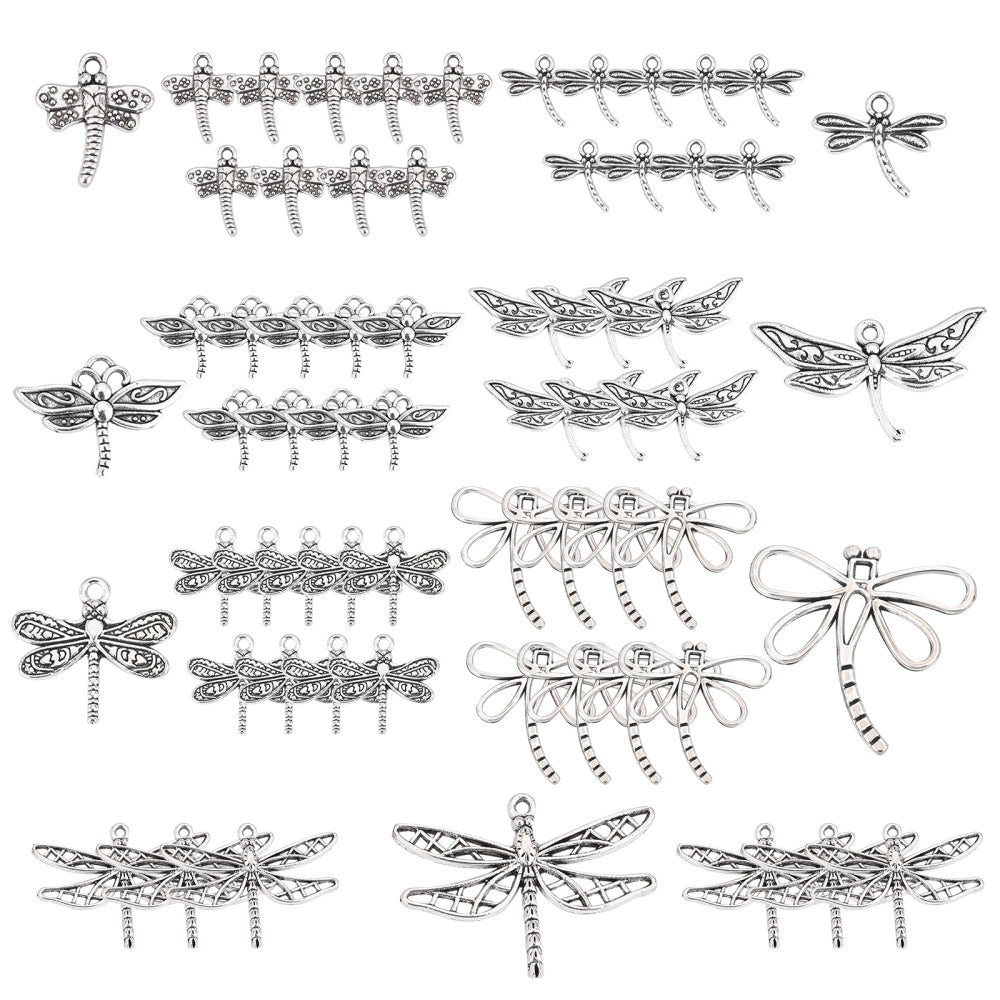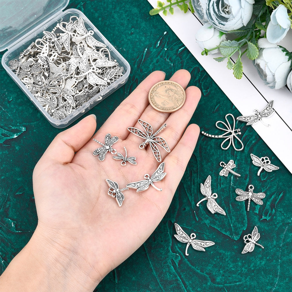 Enhance your crafting projects with this set of 70 antique silver dragonfly and butterfly alloy pendants. Perfect for making bracelets, necklaces, and other crafts.