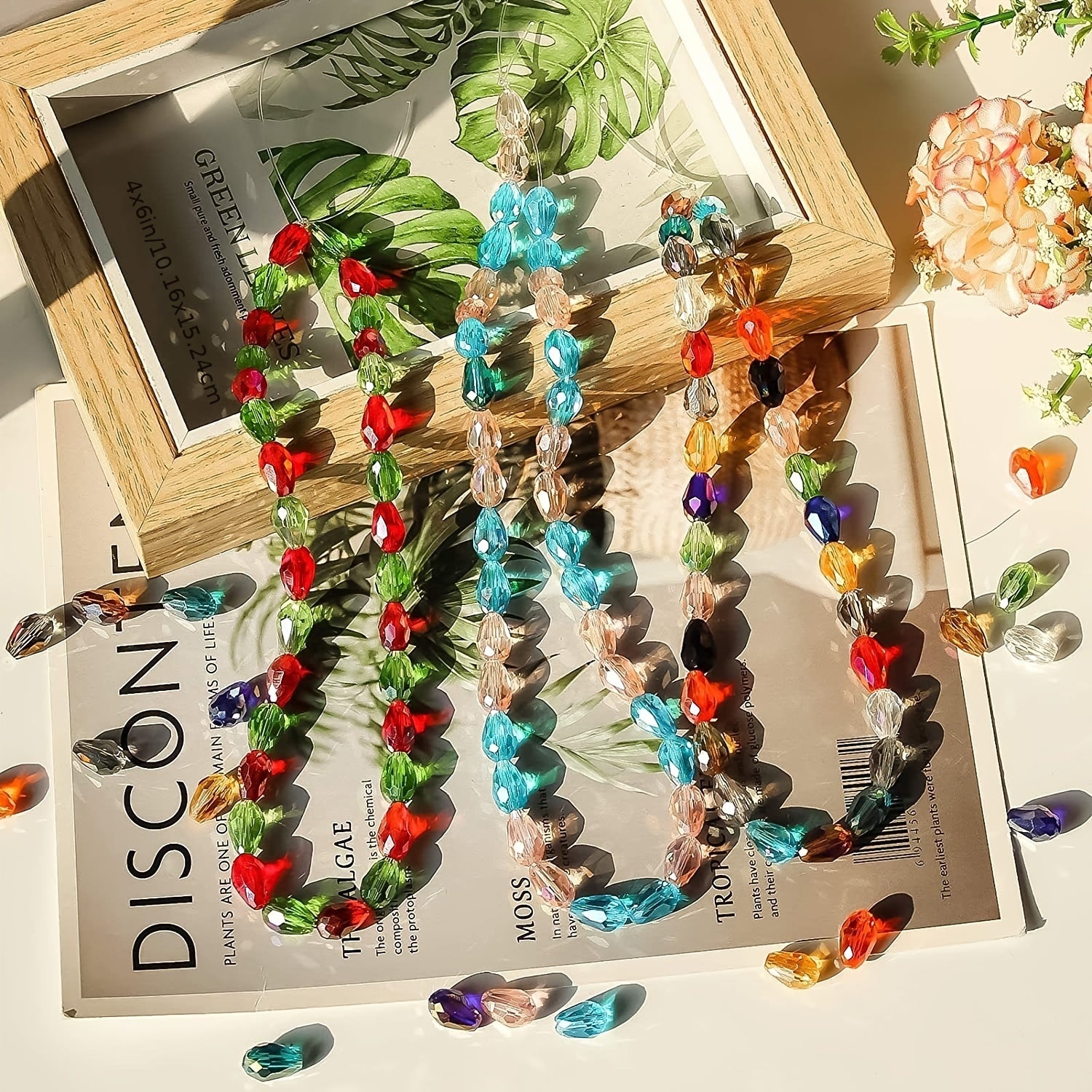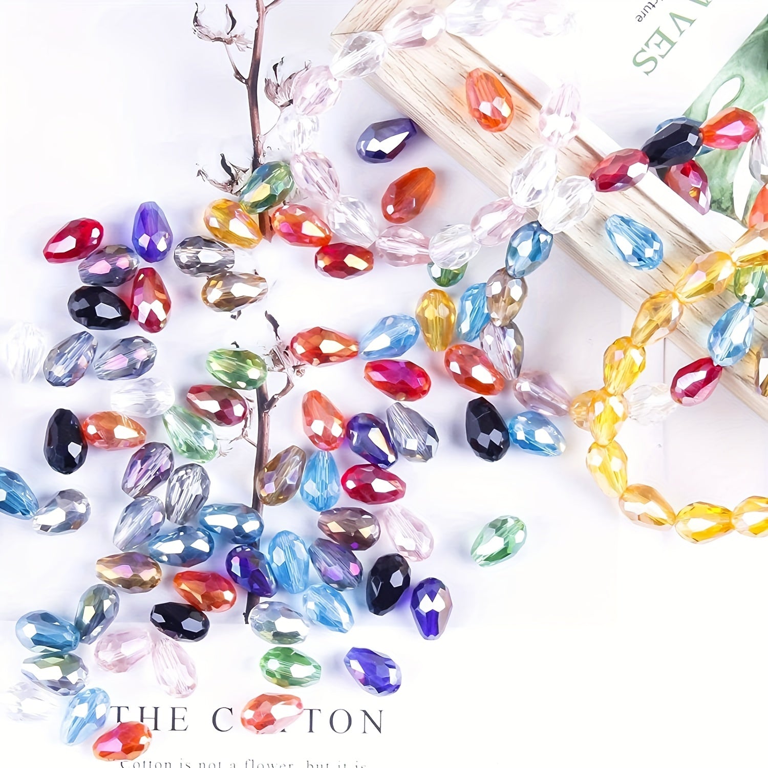 Get 70 transparent crystal faceted teardrop beads for your jewelry making projects. These semi-finished accessories are perfect for bracelets and necklaces.