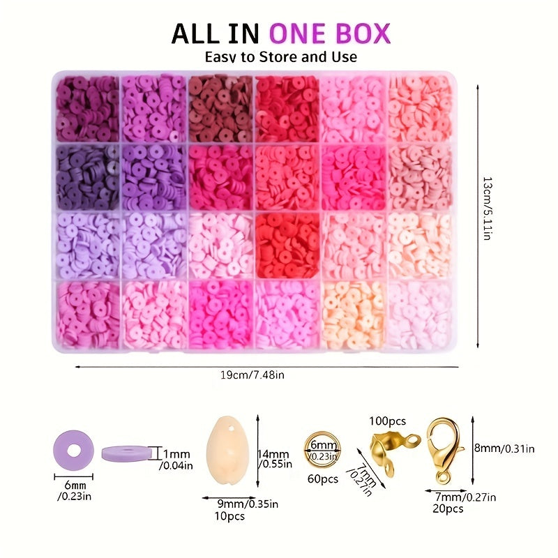 This kit includes 8420pcs of flat round polymer clay beads and letter beads for jewelry making. Perfect for crafting beautiful bracelets.
