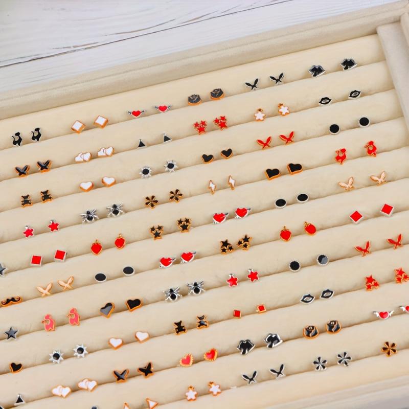 Elevate your style with this 72-piece vintage boho resin rhinestone earrings set featuring mixed floral and heart designs. Made with plastic ear needles, these earrings are versatile and ideal for daily wear.
