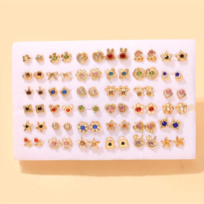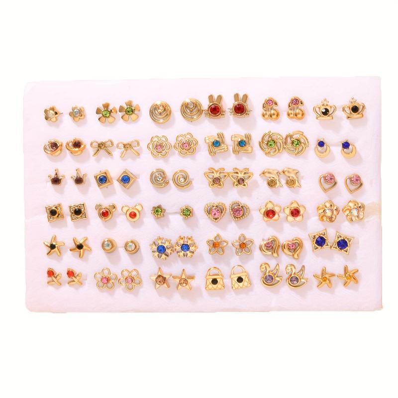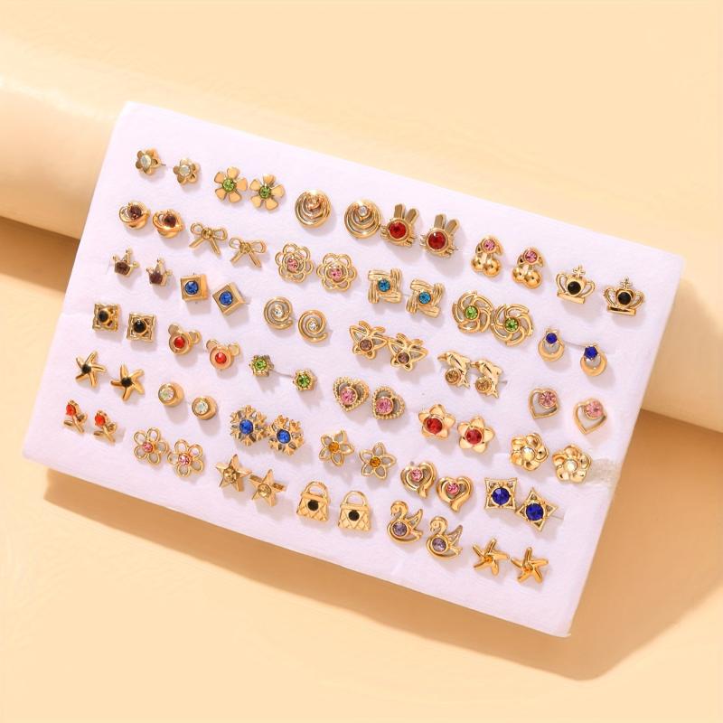 Add a touch of whimsy and elegance to your outfits with this set of 72 assorted stud earrings. Featuring a mix of floral, bow, heart, and crown designs, these earrings are perfect for parties, music festivals, and everyday wear.