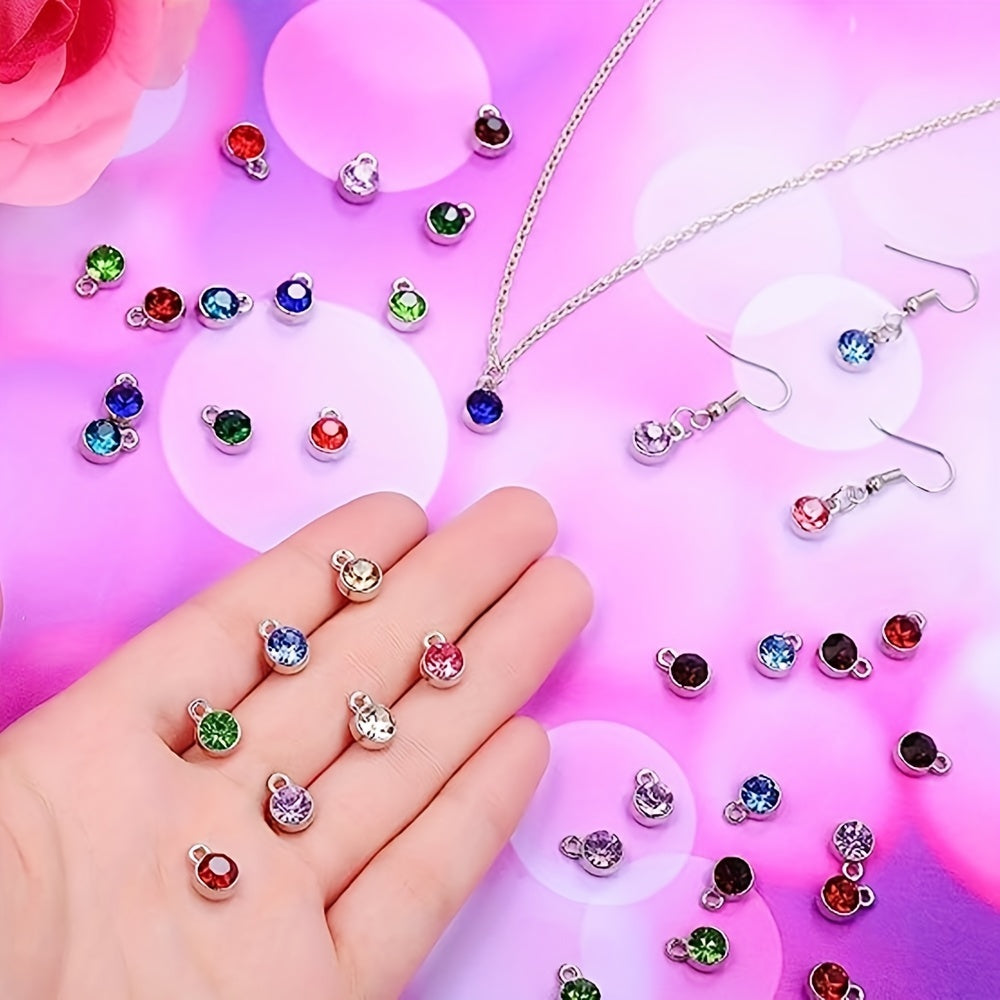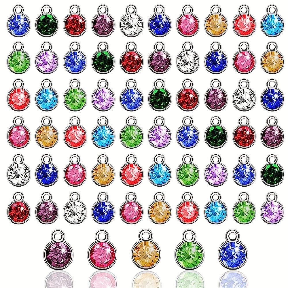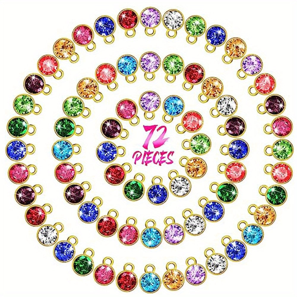 Add a pop of color and sparkle to your jewelry creations with these 72 colorful round birthstone alloy pendants. Perfect for necklaces, bracelets, and earrings.